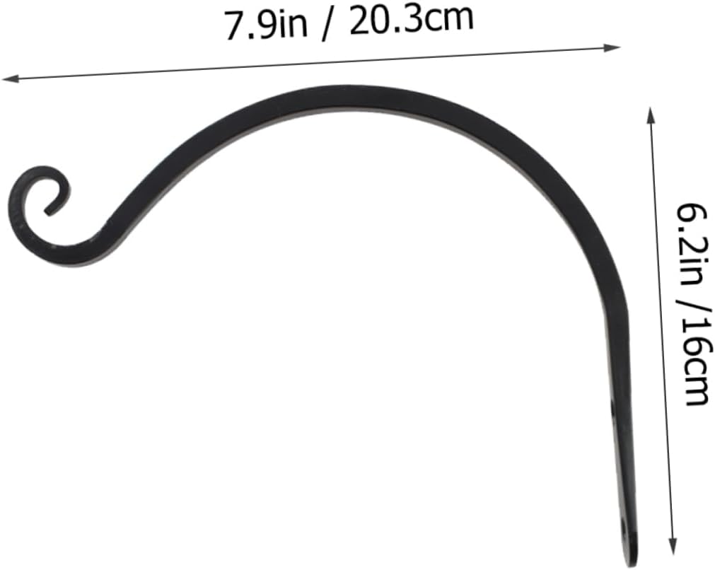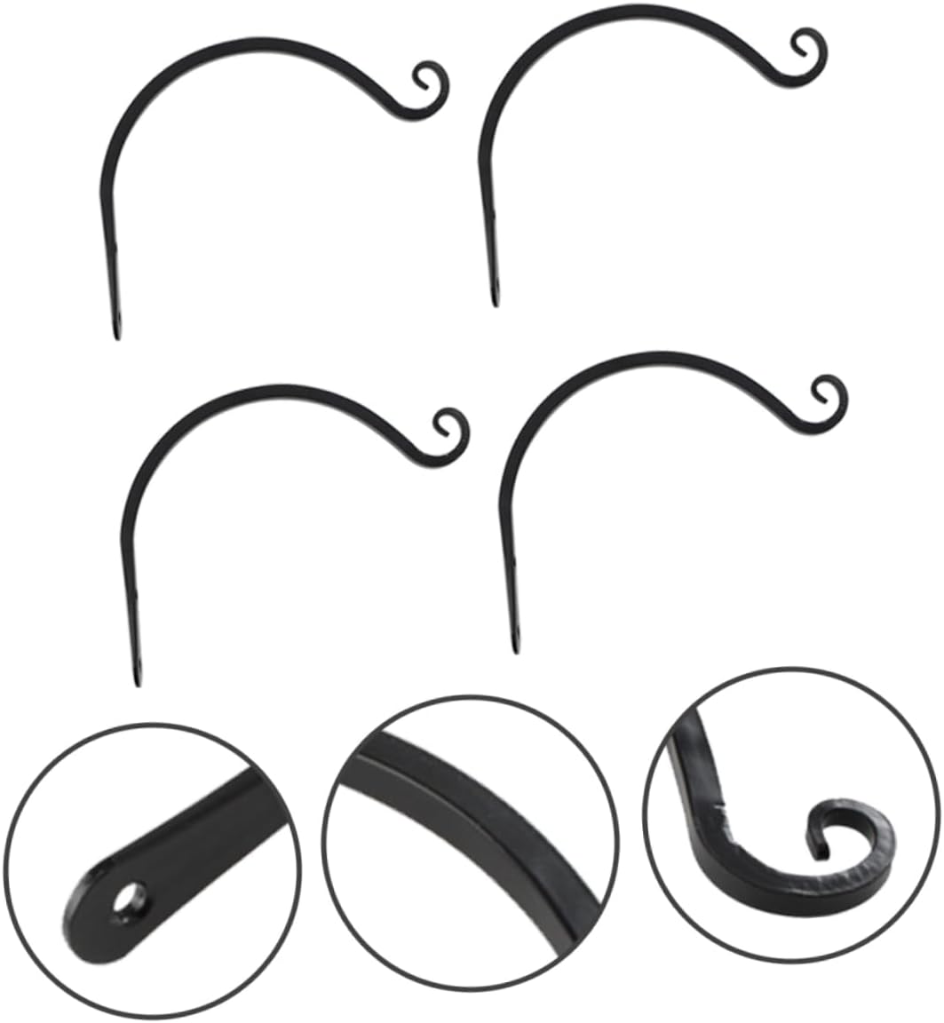 Package List 4 x hooks Characteristics - Size: About 20.30X16.00X0.80cm/7.98X6.29X0.31inch flowerpot hook - Material: Iron metal flower hook - Color: Black flower pot hangers - The hanging plant bracket is made of durable and sturdy metal iron material Flower Basket Hanger. - Rustic wall hook will add some classic minimalist flair to compliment your home decoration Hanging Flower Pot Hook. - You can easily install it indoors, outdoors or in the garden, stable and not easy to deform metal hanger. - Hanging your planter for saving space, and it can provide you a large gardening space hooks for hanging. - Perfect for hanging planters, flower baskets, lanterns, string lights, wind chimes, etc hanging pot holder.Goods Descriptionoutdoor hook This iron wall hanging hook is very great for hanging various flowers, plants, wind chimes, lanterns, bird manger and other decorations to create a landscaping space and charming atmosphere.metal planter hanger It will add an elegance and beauty to your home or garden
