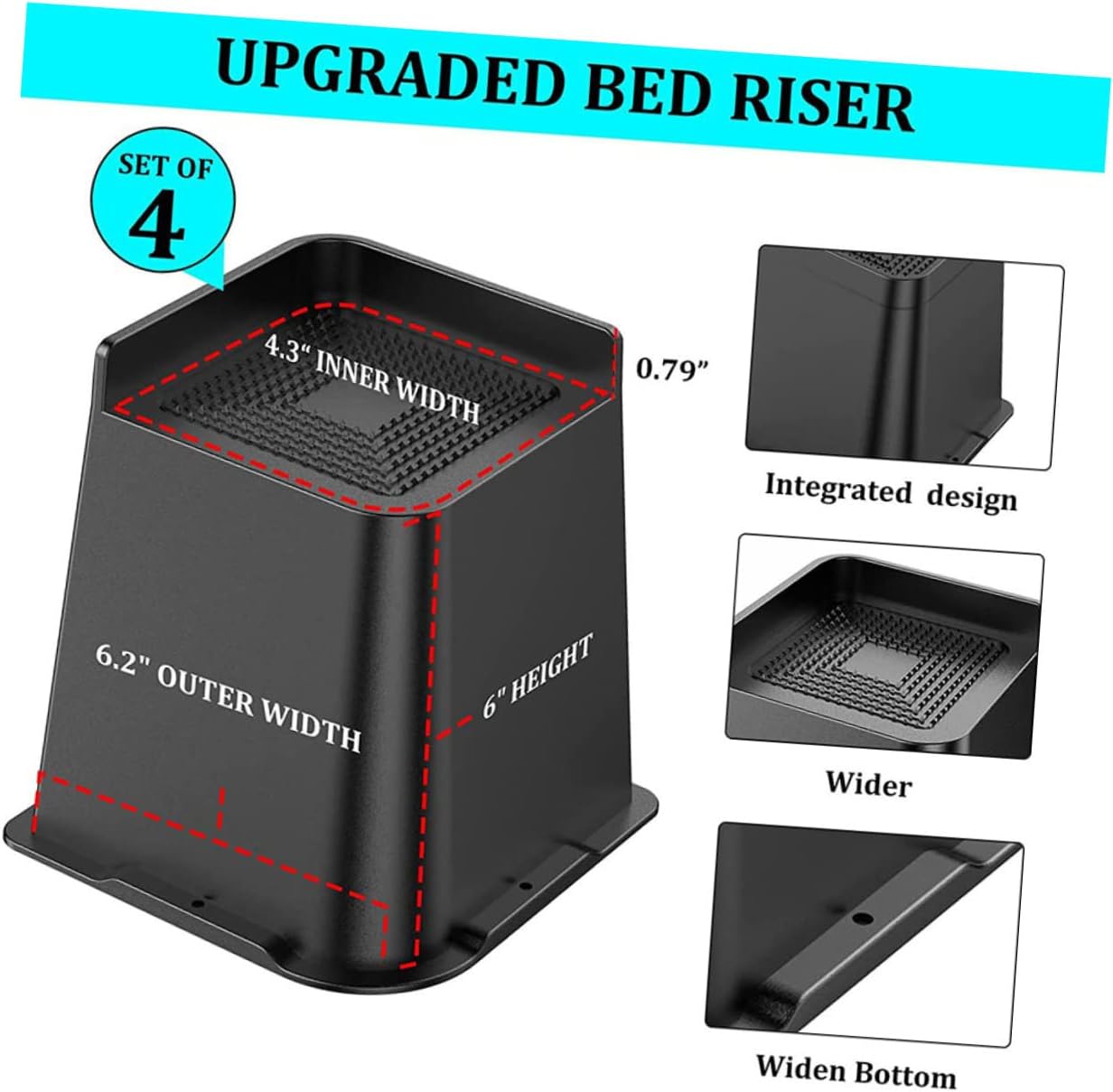 Package Include 4 x furniture risers Features - Color: Black furniture raising pads - Size: About 12.50X11.70X11.70cm/4.91X4.60X4.60in furniture risers - Material: Rubber lift furniture risers - Coming in color, it can work with multiple furniture and it blends seamlessly into most home decor leg risers for furniture. - Practical risers, prevent furniture from sliding, shaking, tilting, daily wear, noise generation and much more risers for table. - This furniture riser is simple , but very practical in use, give you a pleasant using experience couch feet risers. - Suitable for sofa, table, and chair, couch, bed, home appliances, cabinet, washing machines, etc sofa leg risers. - Adopting from rubber material, which is lightweight, with and good workmanship sofa risers.Goods Informationrisers for table legs The bed lifts riser has good stability and can prevent the furniture from sliding, allowing you to use it more safely.sofa riser Easy to use, simply place under the legs of your washing machine, bed, dresser, bookshelf, or any other furniture, to gain under bed storage space for you