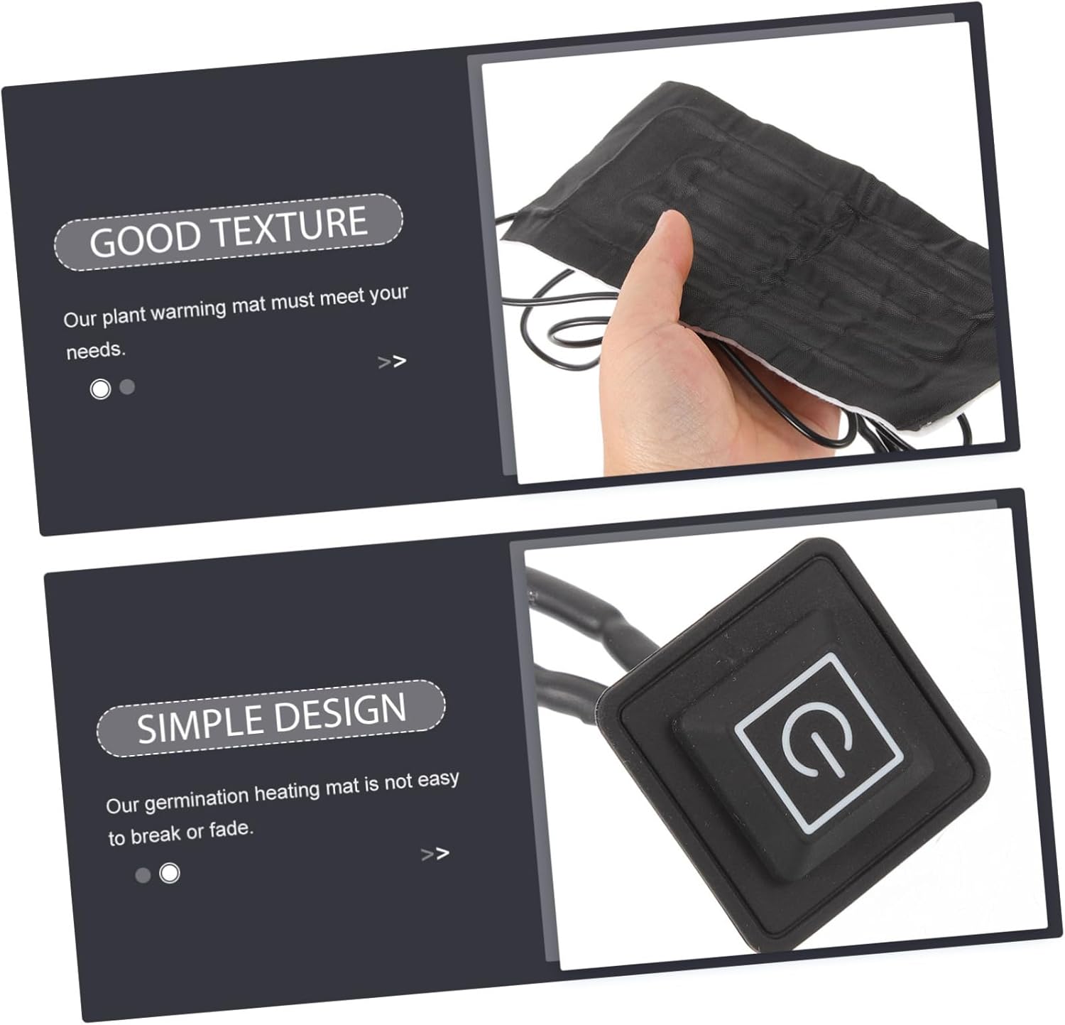 Package Include 5 Features -Size:19.50X10.00X0.20cm/7.66X3.93X0.08in curing pad -Color:Black heat pad for plants -Power:7W plant heating mat -Input voltage: 5V 2A propagation stations -Temperature range:about 40-65 ℃ plant warmer -Material:Cloth germination heat mat - Plant heat mat has wide range of application, can be applicable to plants' germination and rooting heated mat. - Fine workmanship, excellent texture, flexible and , heat mat is efficient and planting mat. - Heat mat is nice for heating plant plant in cold conditions. Not plants, but also vegetables, etc. heat mat - This heating pad is light and compact, easy to store and use, will not take up much space heating mat for plants. - Germination heat mat provides temperature to vegetable and plant germination growing plant mat.Goods Descriptionplant warming mat craftsmanship and reasonable design make this plant heating mat easy to use.flower heating pad Made of carefully selected materials, this plant heating pad has long-term durability and excellent performance, which can serve you well.plant mat for indoor plants the heat distribution is more uniform, which is much conducive to the germination and rooting of indoor gardening