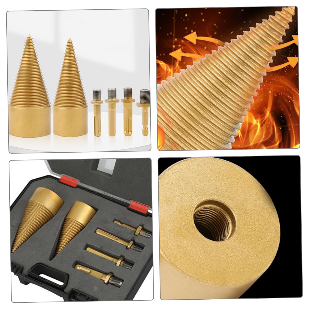 Package List 2 bits 4 x connecting rods Features - Color: Golden splitting wood cone drill - Material: Carbide+plastic Firewood Splitter. - Size: 9.40X4.00X4.00cm/3.69X1.57X1.57in log drill bit - No moving blades, and don't have to worry about your swinging an Splitting Wood Drill - Titanium coating to reduce friction and heat by heat treatment, makes cutting easier and more durable log splitting drill - Hardening treatment, high hardness precision, wear resistance, durable to use drill bit for log splitting. - This drill is suitable wide range of use, whether it is family, camping or farm, can be easily used log split drill - You can easily to split large firewood, wood , make it a easy work, save energy and time splitting drill Goods Descriptionsplitting drill bit It is one of the for you.Wood Drill Bit Are you looking professional, yet wood splitting drill bit? Are you in search of a sturdy, trustworthy tool that can do multiple works at once? , ! Our professional wood splitting drill bit must meet you needs