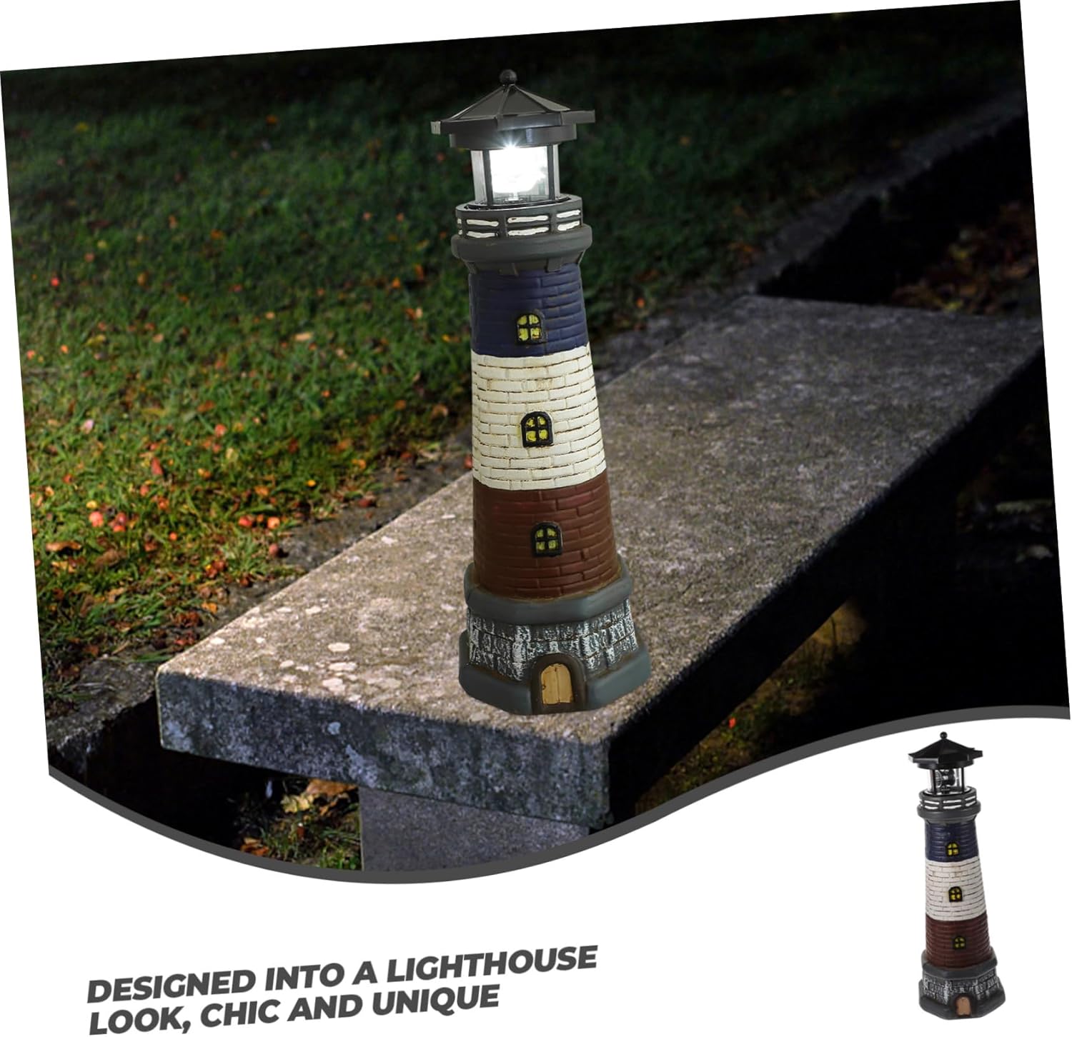 Package Include 1 × Solar-power Lighthouse Statue Features -Rated Power: 0.04W solar lighthouse for yard -Material:Resin working lighthouse statue -Solar panel: 2V 40mah solar yard stakes - Color: Black outdoor solar lighthouses - Size: 12.00X12.00X37.50cm/4.72X4.72X14.74in rotating solar lighthouse -Product Info:Garden lights -Battery: 1.2V 300mah AAA battery outdoors garden decoration -Light Source: LED memorial garden stake -IP Grade: IP55 garden solar waterproof statues -Continuous lighting time:6-12 hours solar garden lighthouse - This lighthouse statue with light can be a perfect your families and friends who love nautical decorations solar lawn decor lighthouse. - The light on the lighthouse statue is solar-powered, which absorbs sunlight in the day and glow at night, energy-saving Lawn Lighthouse Decor. - Wide application, the solar lighthouse is perfect for decorating your garden, home, lawn, porch, path, etc outdoor garden lighthouse statu. - Designed into a lighthouse look, chic and unique, the resin craft decor has good decorative effects small solar lighthouse. - Made of premium resin material, this lighthouse ornament is durable and can be used for long time yard ornamental lighthouse.Goods Informationoutdoor solar lighthouse for yard This kind of lighthouse can be used as garden, lawn, yard, shop decoration, which will make your garden decoration more rich.lighthouse model with solar This creative lighthouse ornament with solar-powered light design is made of premium resin material, not easy to break or deform