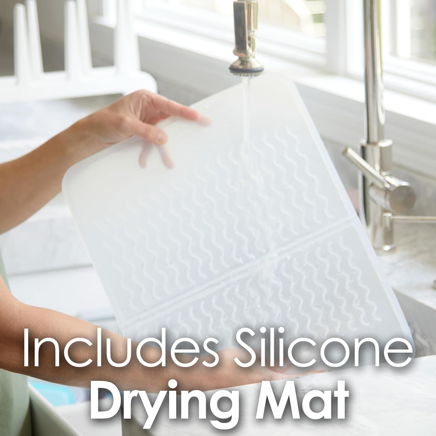 | Material Type | Drying Mat: 100% Siliocone, Drying Rack: 100% Recycled PET |