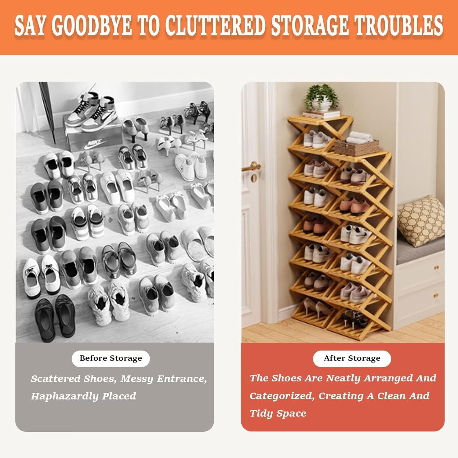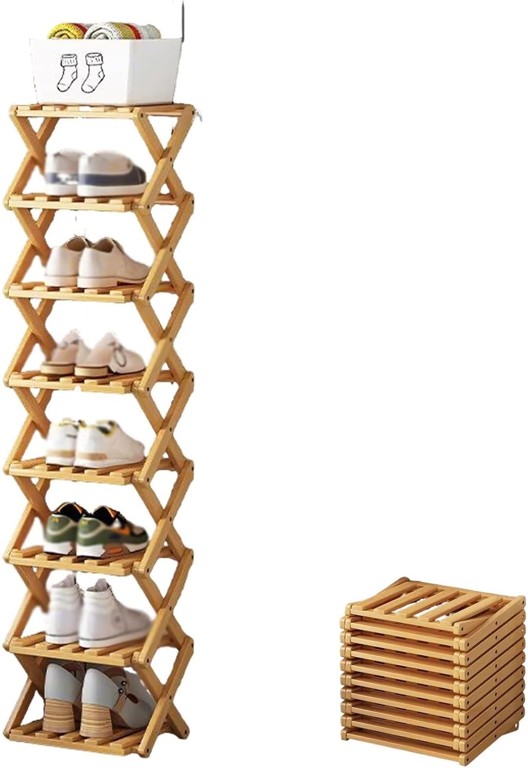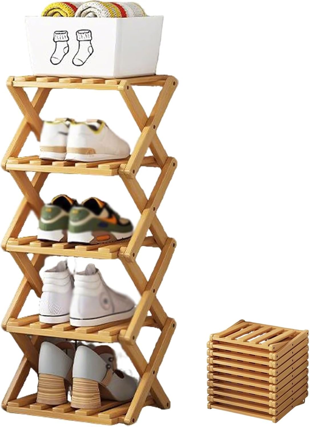 😊Portable Bamboo Shoe Rack – A Stylish And Practical Storage SolutionTired Of Clutter Taking Over Your Hallway, Bedroom, Or Living Space? Meet Our Versatile Bamboo Folding Shoe Rack, The Simple, Stylish, And Sustainable Storage Solution Designed For Modern British HomesIt'S Not Only An Ideal Choice For Storing Shoes, But Also A Multi-Functional Storage Rack That Helps You Easily Solve Various Clutter Problems At Home:✨The Perfect Shoe Rack: Keep Entrances Tidy And Find Your Favourite Pairs In Seconds(It Can Store Various Styles Of Shoes, Boots, Sneakers, High Heels, Etc)✨A Stylish Bookshelf: Organise Your Books And Magazines In The Study Or Living Room.✨A Neat Bathroom Caddy: Store Toiletries, Towels, And Bathroom Essentials.✨The Ultimate Rv Companion: Save Crucial Space In Your Caravan Or Motorhome.✨A Versatile Display Shelf: Showcase Plants, Accessories, Or Ornaments In Your Bedroom.📝Please Note:📝Care Instructions:Waterproof Material,Simply Wipe Clean With A Dry ClothThis Listing Includes Only The Shoe Rack; Other Items Shown In Images Are Not IncludedDue To Manual Measurement, A Slight Variation Of 1-2 Mm May OccurColor Discrepancies May Arise From Different Lighting Conditions And Screen Settings, Which Is A Normal OccurrenceThe Product Needs To Be Noted That The Wooden Bars On The Shelves Are Rotatable,Need To Be Turned Till The Shelves Can Hook Right On Them❓ Have Questions? Please Contact UsWe Have Great Confidence In This Brand New Shoe Rack. If You Have Any Questions Or Concerns, Please Contact Us🏠Practical And Stylish, This Storage Solution Is Designed Specifically For Your Lifestyle, Offering A Simple Yet Effective Everyday Organization Solution,Add A Touch Of Natural Elegance To Your Home While Enjoying Hassle-Free Organization—Invest In This Must-Have Storage Essential Today!
