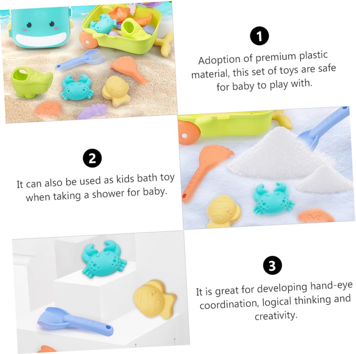 Package List 1 x set of Characteristics -Size: About 11.00X8.50X3.50cm/4.32X3.34X1.38inch -Product Info:Sand shovel -Material: ABS - Bright colors, creative designs, these sand can bring more fun. - Durable, strong and wear-resistant, not easy to crack or deform Interesting Beach . - Applicable for beaches, parks, backyards, swimming pool, bathtub, and more Sand . - This set of has bright colors and lovely shapes, and interesting. - can not only have fun, but also use their imagination and exercise their hands-on skills Outdoor Sand Beach .Goods Description Bathtub The sand are brightly painted and sturdy enough to stand up for some fun interactive play.Interesting Beach They are suitable for to play in swimming pool or sandbeach. Bathing Most love playing sand and use their imagination to create interesting objects. Outdoor Sand Beach Therefore, this set of sandbeach are suitable for playing