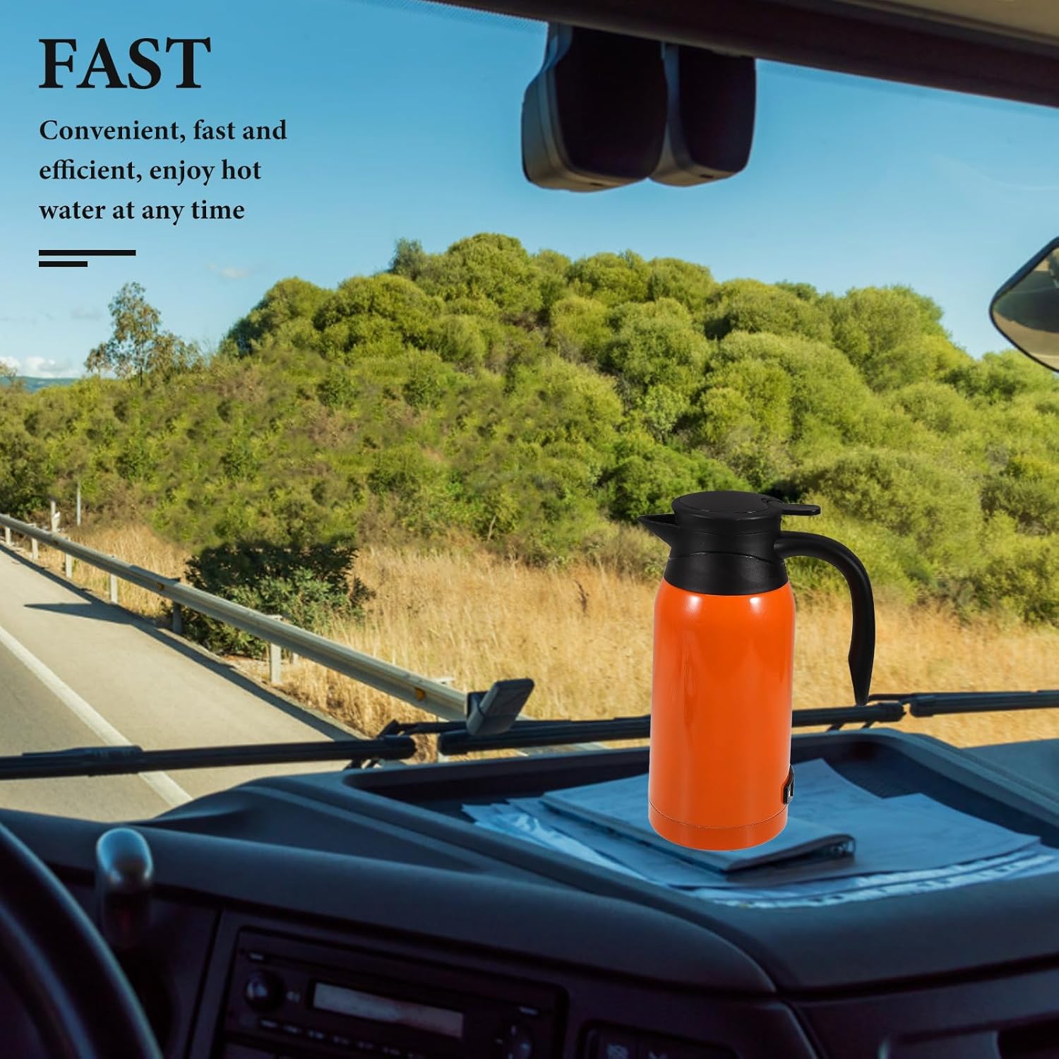 Description This car electric kettle is designed for truck drivers and travelers who need a reliable source of hot water on the go. Its large capacity make you have enough hot water for your needs, while the insulated design keeps the water warm for extended periods. The sleek exterior makes it a stylish and practical addition to your travel gear. Features -Color:Orange -Material:Stainless steel and PC -Size:25.80X17.50X10.30cm/10.14X6.88X4.05in -Capacity: 1000 ml -Large capacity: the car electric kettle features a large capacity, great for long distance travel, ensuring you have enough hot water throughout your journey -Truckspecific design: specially designed for trucks, this travel electric kettle is compatible with various vehicle models, making it a versatile choice for truck drivers -Insulation and heating: with its insulation and heating functions, you can enjoy hot water anytime, whether for making tea, coffee, or other beverages -Convenient electric cup: the electric kettle for car is designed as an electric kettle, providing a convenient and quick way to heat water on the go -Multifunctional heater: this car water heater for travel can also be used as a water boiler, making it ideal for preparing hot drinks and instant meals- Color: Orange.- Size: 25.80X17.50X10.30CM.Package Including1 water kettle