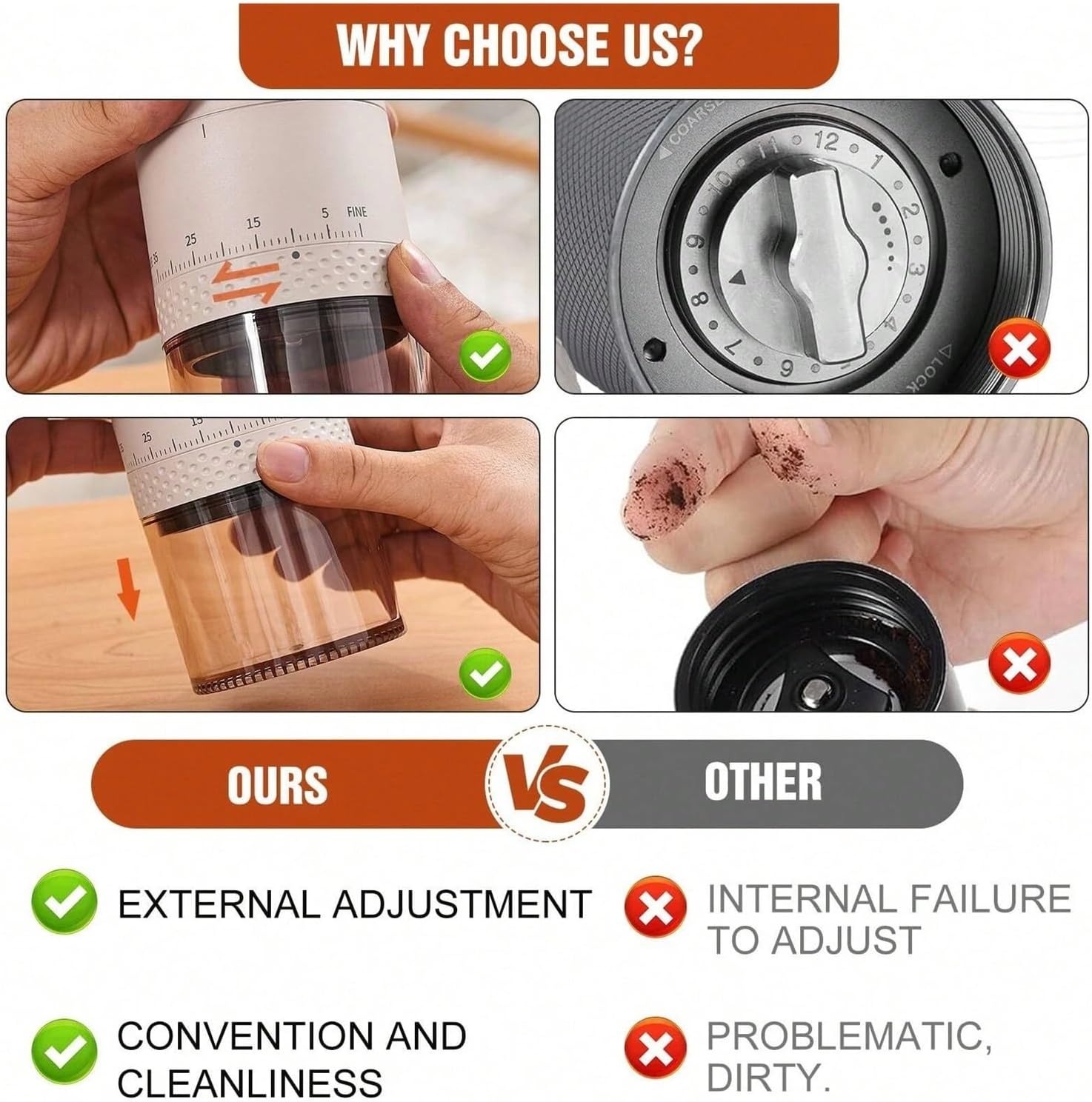 Weight: 450 gProduct category: Electric coffee grinderApplicable plas: offi, home, bar, restaurant, car, outdoor, leisure bar, cafeStyle: Modern and simpleMaterial: PlasticRechargeable coffee grinder with ramic coreAdvantages: External adjustment Coarse adjustment to fine adjustment: 38 levelsLED touch screen on/off, battery status display.Material: Copper motorSize: 68*68*194mmCapacity: 30gRechargeable lithium battery: 3.7V/1500mAH/13WPackage: 1 color box, grinder*1, USB cable*1, user manual*1==========Grinding level: 4-10Power sour: ElectricPower (W): 13W