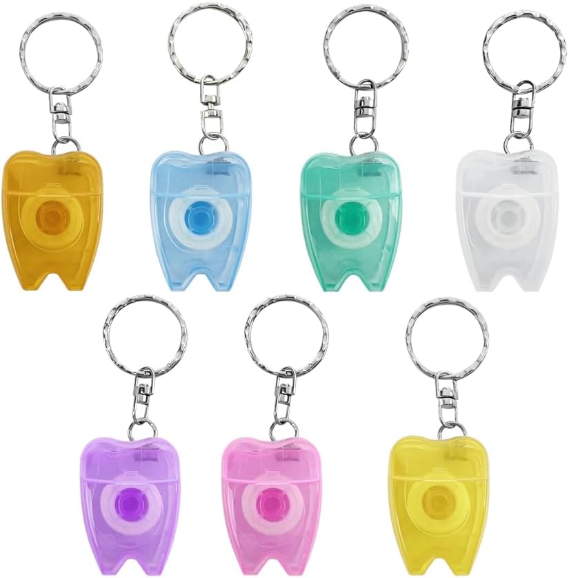 Portable Dental Teeth Floss, YOUYA DENTAL 100Pcs Custom Personalized Logo Tooth Shaped Key Chain Teeth Floss Customized Design with Any Image Logo and Text for Gift Business Logo 15M Length- White Feature: Type: Dental Floss Mint Teeth Keychain Material: Plastic+Nlyon Each Size: approx. 4cm*3cm*1cm Length: 15M Weight: approx. 9g Shape: teeth Package include: 100pcs Customized LOGO Dental Flosser Keychain