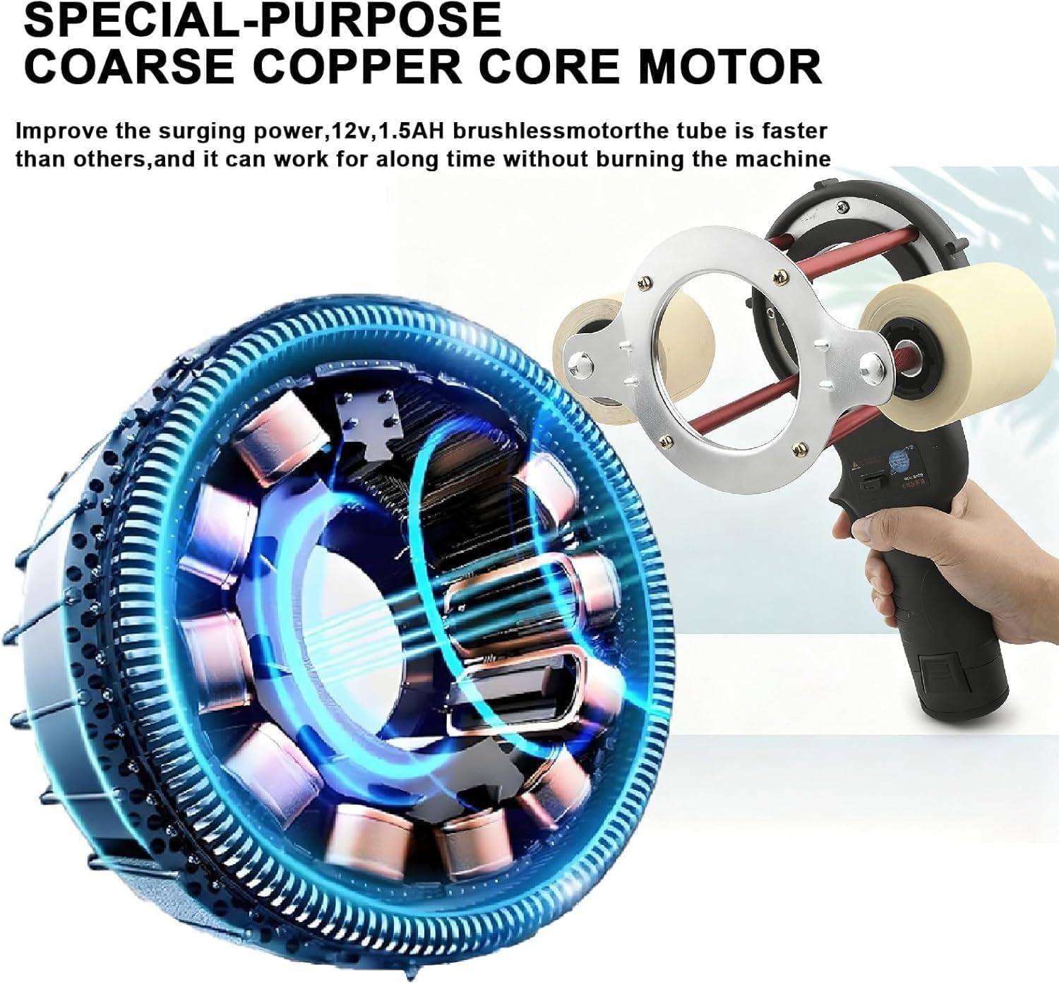 The Air Conditioning Pipe Wrapping Machine is designed to streamline the process of wrapping air conditioning pipes, featuring a semi-automatic function that significantly minimizes manual labor. This innovative tool is perfect for professionals working with central air conditioning systems and large square pipes, enhancing efficiency on the job. Key Specifications: - **Power**: 27W - **Output Voltage**: 12V - **Current**: 1.5AH - **Speed**: 70~380RPM - **Charging Time**: 70 minutes - **Power Supply**: Lithium battery - **Aperture**: 75mm/2.95in - **Tie Adjustment Diameter**: 5-10cm/1.97-3.94in - **Wheelbase**: 147mm/5.79in - **Maximum Pipe Diameter**: 70mm/2.75in - **Product Size**: 30×26×20cm/11.81×10.24×7.87in - **Weight**: 1.2kg/2.64lbs This machine not only boosts productivity but also ensures a neat and professional finish for every project. Its lightweight design makes it easy to transport, allowing for convenient use in various settings. Whether you're a seasoned professional or a DIY enthusiast, this tool is an invaluable addition to your toolkit. With its user-friendly operation, the Air Conditioning Pipe Wrapping Machine is perfect for efficiently completing tasks, allowing you to focus on providing high-quality service. Invest in this reliable equipment to elevate your work and enhance customer satisfaction.