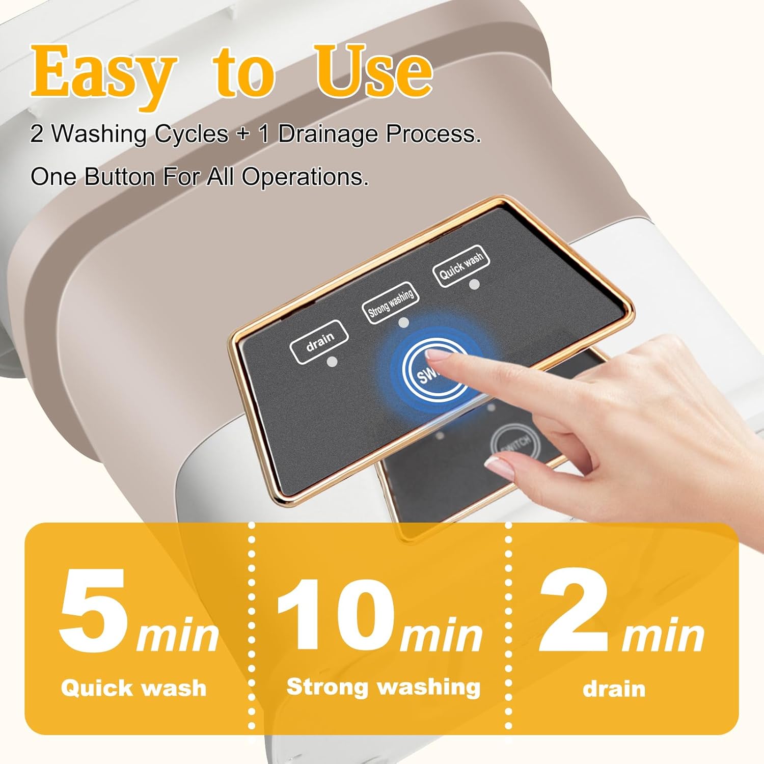 | Additional Features | High Efficiency, Portable, mini, foldable, compact for travel camping or rv, Strong bottom suction for steady, Upgraded dehydration basket for drain, with Low-position drain hose |