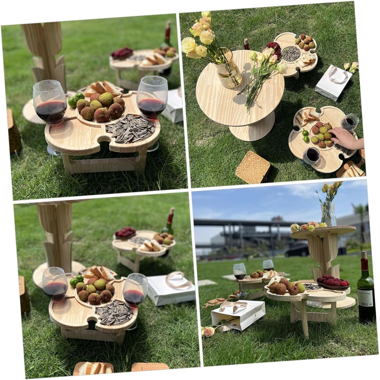 Package List 1 x Table Characteristics -Material:Wood -Color:Khaki -Size:35.00X35.00X18.00cm/13.76X13.76X7.07in -Product Info:Portable folding wine table - Manufactured with wood material, this table is durable and practical for use. - Compact in size and light in weight, it won't take up much space. This outdoor wine picnic table will spice up any gathering or party. - With stable table legs on the bottom, it can be stably placed on the ground, grass, sand, etc outdoor folding table - Portable beach table, pop up mini picnic table, short table for picnic. Can be used as a housewarming to your friends folding picnic tables. - It is simple in design, but very practical in use, which brings great convenience to you folding patio table.Goods Descriptionportable camping can be used to hold your wine bottle, wine glasses or other food in outdoor gatherings, beach party, etc.folding tables material and fine workmanship can ensure its durability and practicability.foldable table camping This item is a wine desk, manufactured with wood materials, so that it can serve you for many years