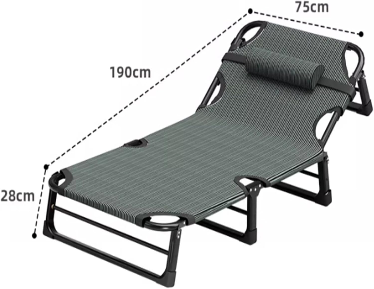 Folding Lightweight Bed,Sleeping Cots Discover unparalleled comfort and convenience with our versatile foldable bed. Camping beds for adults boast a modern or stylish appearance and design, adding a touch of distinctive decor to indoor spaces. Whether accommodating changing needs among family members or unexpected guests, it effortlessly meets seating and sleeping demands across various scenarios. Specification: Product material: Polyester + steel pipe Size: (The size is as shown in the picture) Unfolded size: 190*75*28cm Folded size: 75*73*19cm Speed adjustment: 4-level adjustment Load-bearing capacity: 200kg Assembly Required: No Packing list: Folding bed*1 Note: 1. Please allow a 1-2 cm error by manual measurement and make sure anything is ok before ordering. 2. The actual color of the item may vary slightly from the pictures shown on the website due to many factors such as the brightness of your monitor and light brightness. Please take the real one as standard. Considerate Customer Service If some questions or suggestions come up before, during, or after your purchase, please do not hesitate to contact us. We’ll do our best to take care of your needs and questions.