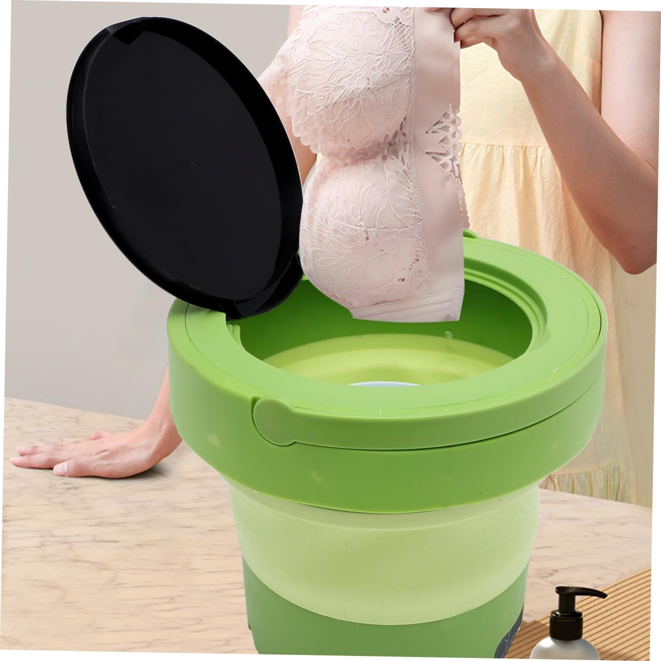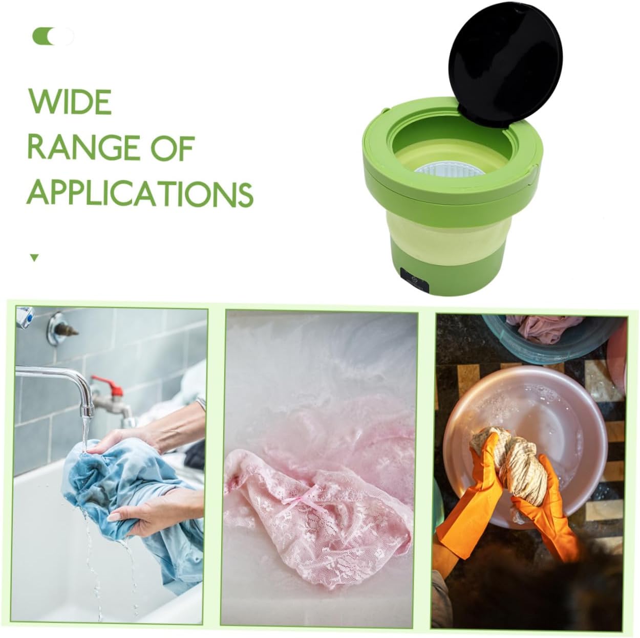 Package List 1 x Portable Washing Machine Characteristics -Rated frequency: 50/60HZ portable washing machine compact washers - Size: 29.00X28.00X28.00cm/11.40X11.00X11.00in -Capacity: about 6L portable washer. -Material:Plastic, resin -Product Info:Portable washing machine - Color: green -Rated power: 24W portable small washer -Portable washer quickly stains and removes stubborn , making washing clothes easy and hands-free portable small washing machine -This practical small washer is made of sturdy materials and excellent workmanship, ensuring use. -This portable washing machine can be used at home, in the dorm, apartment and more places you need washing machine small -Voltage:AC110V washing machines portable -Its lightweight design make the small washer good for travel and business trips, taking up minimal space small portable washer -With strong power, the small washer efficiently cleans clothes faster and prevents tangling washer machineGoods Informationwashing machines The portable washer from clothes without causing any deformation, providing a satisfying user experience.travel clothes washer Suitable for cleaning t-shirts, clothes, socks, and undergarments.portable mini washer Note:This item comes with US 110V plug, please confirm the voltage of your area before purchasing.travel washing machine Crafted from sturdy materials, this compact washing machine is built to last and can be easily carried with you