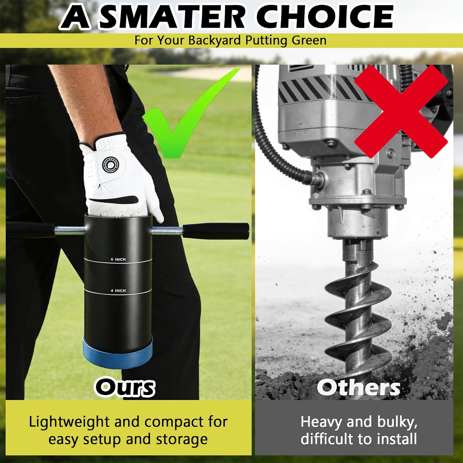 Portable Golf Hole Cutter with Detachable Handle, 4 inch and 6 inch USGA Standard Carbon Steel Hole Digger, Post Hole Digger for Garden, Backyard, Outdoor Golf Putting Green Practice
