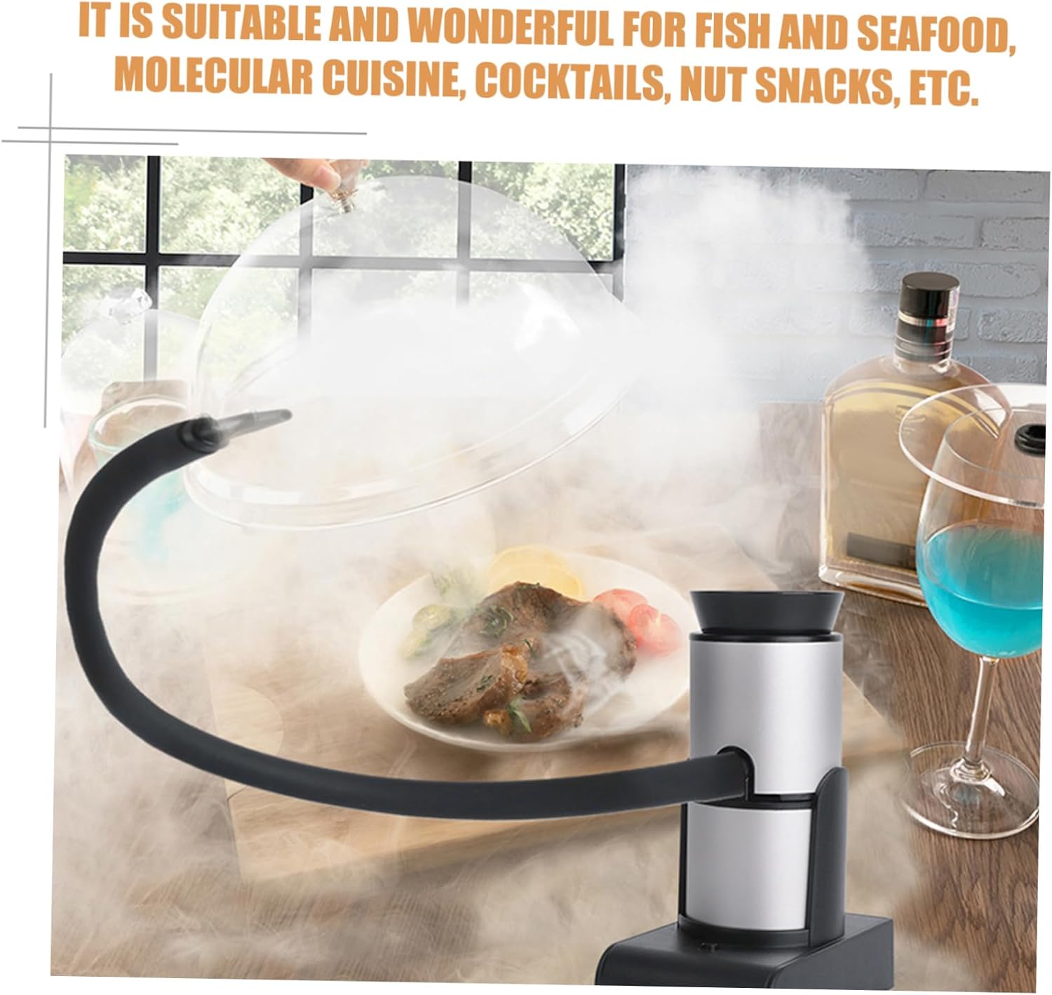 Package Include 1 x smoke infuser 1 x wooden x hose 1 1 x screwdriver 2 x filter nets Characteristics -Color:Silver smoke generators for cooking -Product Info:Smoke machine -Material:Aluminum alloy + zinc alloy + plastic Kitchen Smoking Cooking Tools -Size:12.30X9.00X5.60cm/4.83X3.54X2.20in smoke generator -Adopted of , sturdy, safe and secure, the cuisine smoky machine is not easy to deform smoke maker. - Powered by 2pcs AA batteries (not included) Meat Smoke Generator -Whether you are professional or home chef, you’ll be taking your cooking skills to higher level with this food smoker smoking meat accessories. -Easy and simple to use, completely reusable and easy to clean, convenient generator Portable Kitchen Smoke Infuser. -It is simple in design, but it's practical to use, which will give you fantastic use experience generator. -Practical function, the handheld smoke infuser can help you enjoy natural and food or drinks portable smoke machine.Goods DescriptionPortable Kitchen Smoke Infuser Do you need durable food smoker for your home kitchen? If so, take a quick look at this food smoker.portable smoking Unique design and craftsmanship ensure its popularity and practicality.generator Made of , durable and