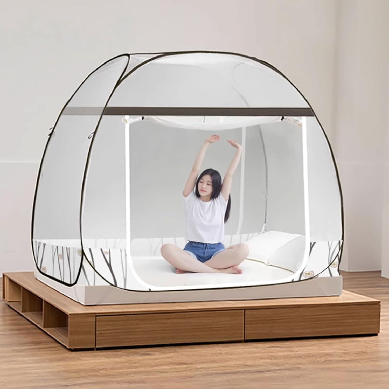 The zipper design allows for easy opening and closing, leaving no gaps for entry, making entry and exit more convenient.Material: Polyester + Steel Wire BracketSize: 150 x 198 x 160cm/59 x 77.9 x 62.9in 180 x 198 x 160cm/70.8 x 77.9 x 62.9inColor: BrownWhether to install: No installation requiredApplicable scenarios: Bed, camping, travel, terracePacking list: Only mosquito net x1 (excluding other exhibits in the picture)Warm Tips:1. Due to differences in light and display, the color of the picture may be slightly different from the actual object, please refer to the actual object.2. The size is measured manually. If there is a slight error, please refer to the actual object received.Easy to carry, it is not only an ideal choice for home use, but also for camping and travel.