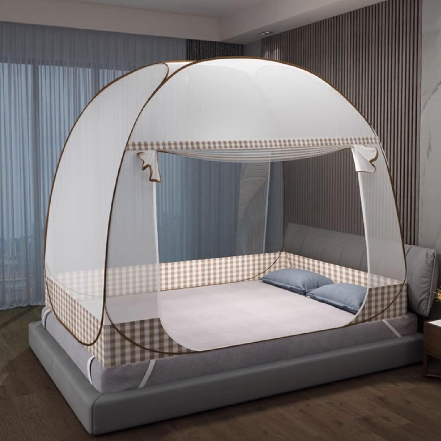 The zipper design allows for easy opening and closing, leaving no gaps for entry, making entry and exit more convenient.Material: Polyester + Steel WireSize: 192 x 120 x 145cm/75.5 x 47.2 x 57in 150 x 195 x 150cm/59 x 76.7 x 59inColor: BrownWhether to install it yourself: NoApplicable scenarios: bed, camping, travel, terrace, etc.Packing list: Only mosquito net x 1 (excluding other exhibits in the picture)Warm Tips:1. Due to the difference in light and display, the color of the picture may be slightly different from the actual object, please refer to the actual object.2. The size is measured manually. If there is a slight error, please refer to the actual object received.Easy to carry, it is not only an ideal choice for home use, but also for camping and travel.