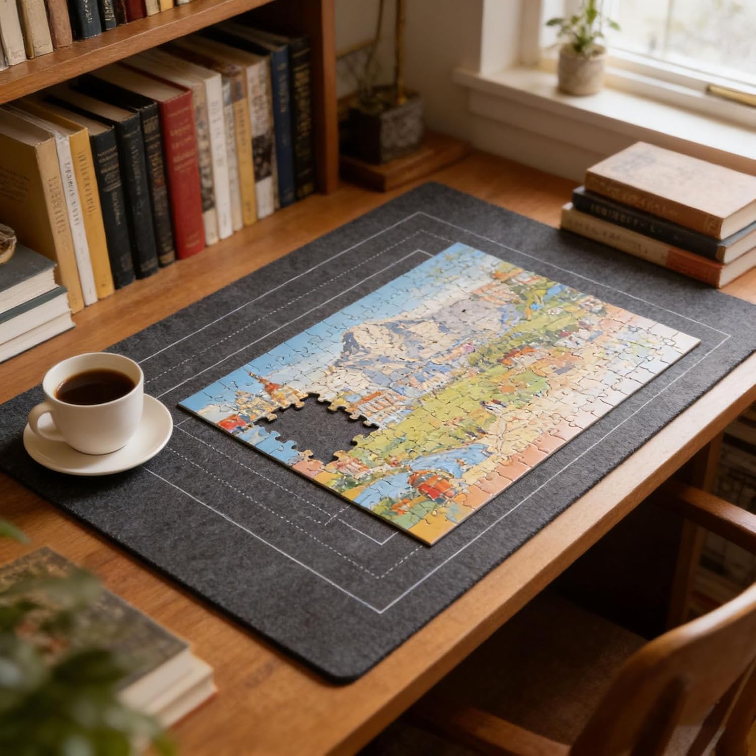 Features:Designed with a roll-up feature and secure straps for easy transport and compact storage keeping neatly containedThis non-woven puzzle mat a perfect large for assembling and safely storing your puzzles inThe soft mat creates a stable work area on any flat ideal for family game nights or individual puzzling sessionsSuitable for puzzlers of ages from children over 3 years old to adults fostering focus and fine motor skills developmentIncludes a reminder for supervision with young children due to small puzzle ensuring a secure play environmentSpecial Texture: The surface features a specially treated soft non-woven fabric or rubber-like coating that provides just the right amount of friction. This securely holds the puzzle pieces in place, preventing them from scattering when rolling or moving, while still allowing for smooth sliding and easy repositioning of pieces during assembly.Provide your puzzles with a dedicated workspace and storage solution. The unique non-slip surface securely holds every puzzle piece in place, while the innovative roll-up design allows you to easily roll up and store your unfinished puzzle at any time, completely eliminating the hassle of puzzles taking up desk space, pieces scattering, or pets causing a mess. The washable material makes cleaning a breeze, and its reusable nature makes it the ideal companion for every puzzle enthusiast—especially those with limited space who value a tidy workspace.Product Description:Portable Puzzle Mat Roll Up Board, Washable Soft Rubber Saver Pad, Reusable Non-Slip Non-Woven Puzzle Mat for Tabletop Storage, Prevents Piece Loss, Easy to Roll & Store Material: ClothColor: Black, GreyProduct Size: 25.98 * 46.46 Inches