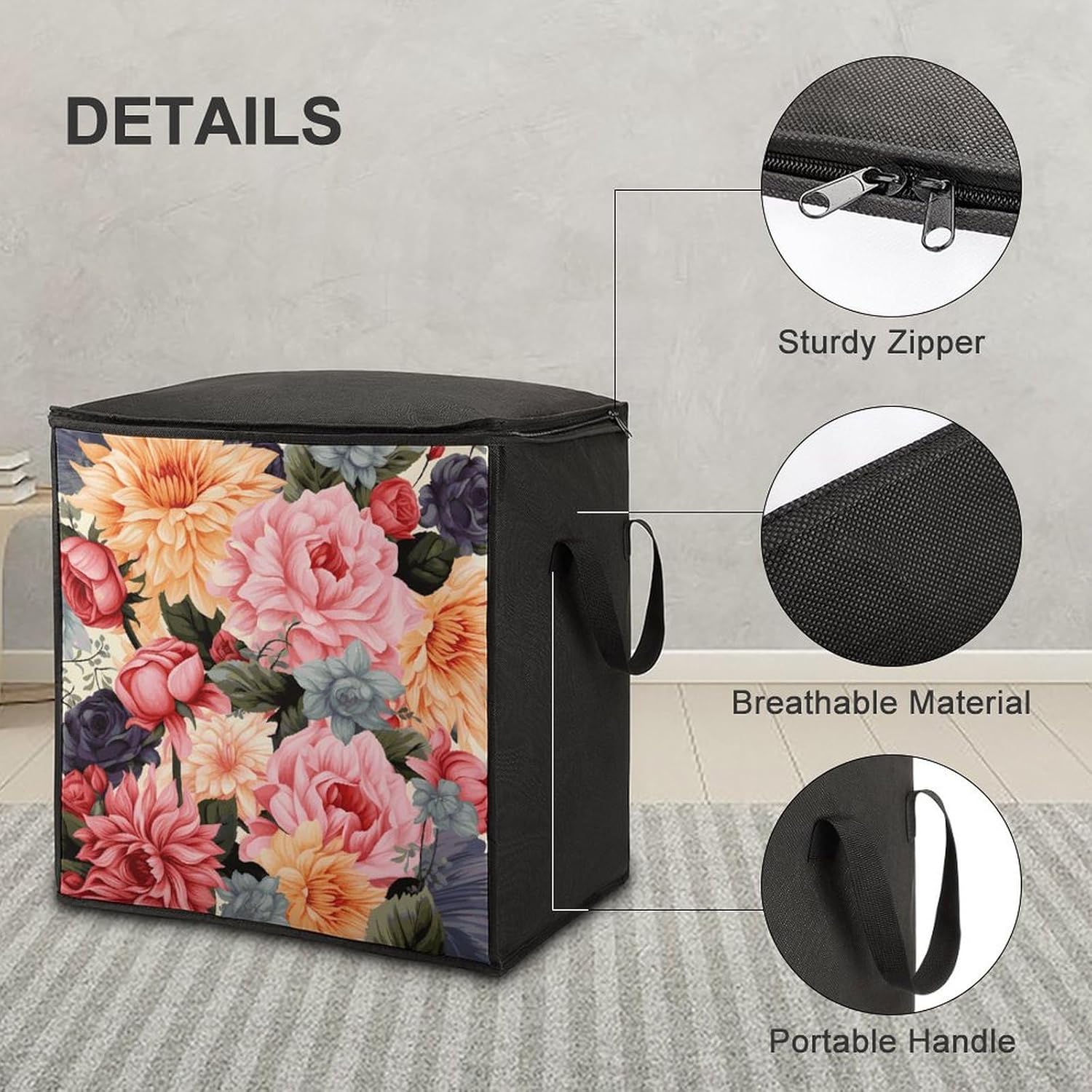 The Flower Pattern printed Large quilt storage bag fit easily into closets or shelves, and are powerful enough to hold your daily items, protecting your stored items from moisture, dust and damage, keeping them fresh and clean Bedroom storage bags can also be used to store seasonal and Christmas decorations, making them a suitable Christmas gift for family and friends