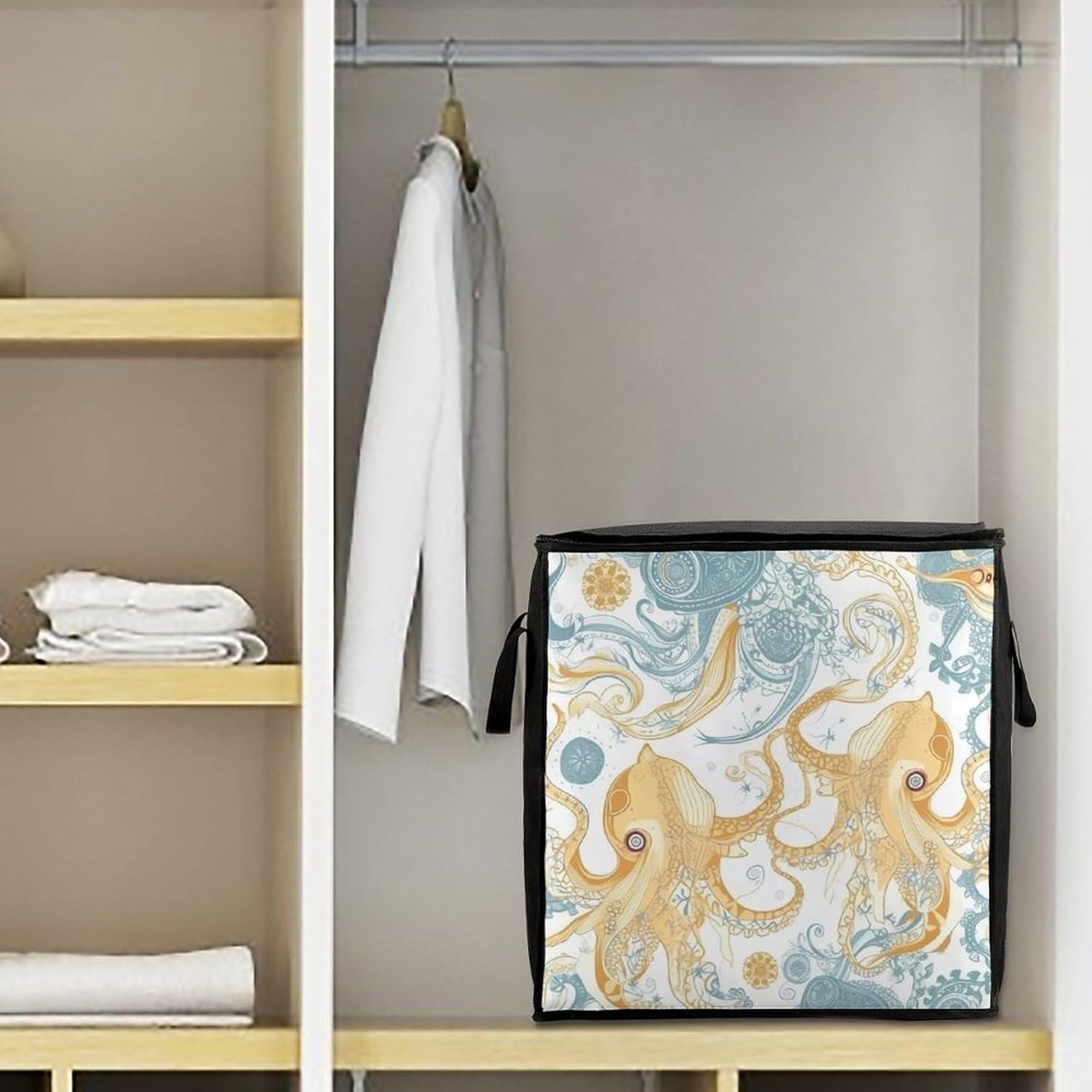 The Light Yellow Fish printed Large quilt storage bag fit easily into closets or shelves, and are powerful enough to hold your daily items, protecting your stored items from moisture, dust and damage, keeping them fresh and clean Bedroom storage bags can also be used to store seasonal and Christmas decorations, making them a suitable Christmas gift for family and friends