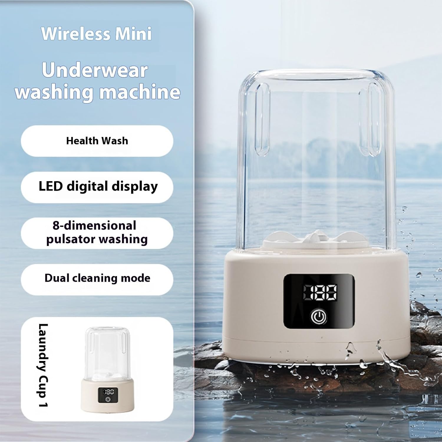 Portable Rechargeable Miniature Washing Machine Laundry Cup Cordless Washer for Clothes Underwear Socks UseFeatures:The miniature portable washing machine delivers deeply for clothes and underwear with 4000mah cordless power, offering hospital grade This washer operates low noise while handling 1.6l laundry loads with efficiency.Ideal for travelers, dorm residents, and new parents needing daily hygienes maintenance for infants' sensitive skin garments and delicates.Perfect for trips, dorm rooms, or quick washes during camping adventures.With its powerful motor and high speed operations, this automatic washer delivers deeply while maintaining low noise levels, ensuring your garments are treated gently and effectively.Specifications:Component: ABS/pcSize:Approx.148x143x216mm/5.83x5.63x8.5inchRate Voltages:5VRate Power:10WBattery Capacity:4000mAhCapacity:1.6LPackage Includes:1PC Miniature Washing MachineNote:1.Please allow 1-2cm errors due to manual measurement, make sure that you donot mind before you order. 2.Due to the differences between different monitors, the picture may not reflect the actual color about the item.
