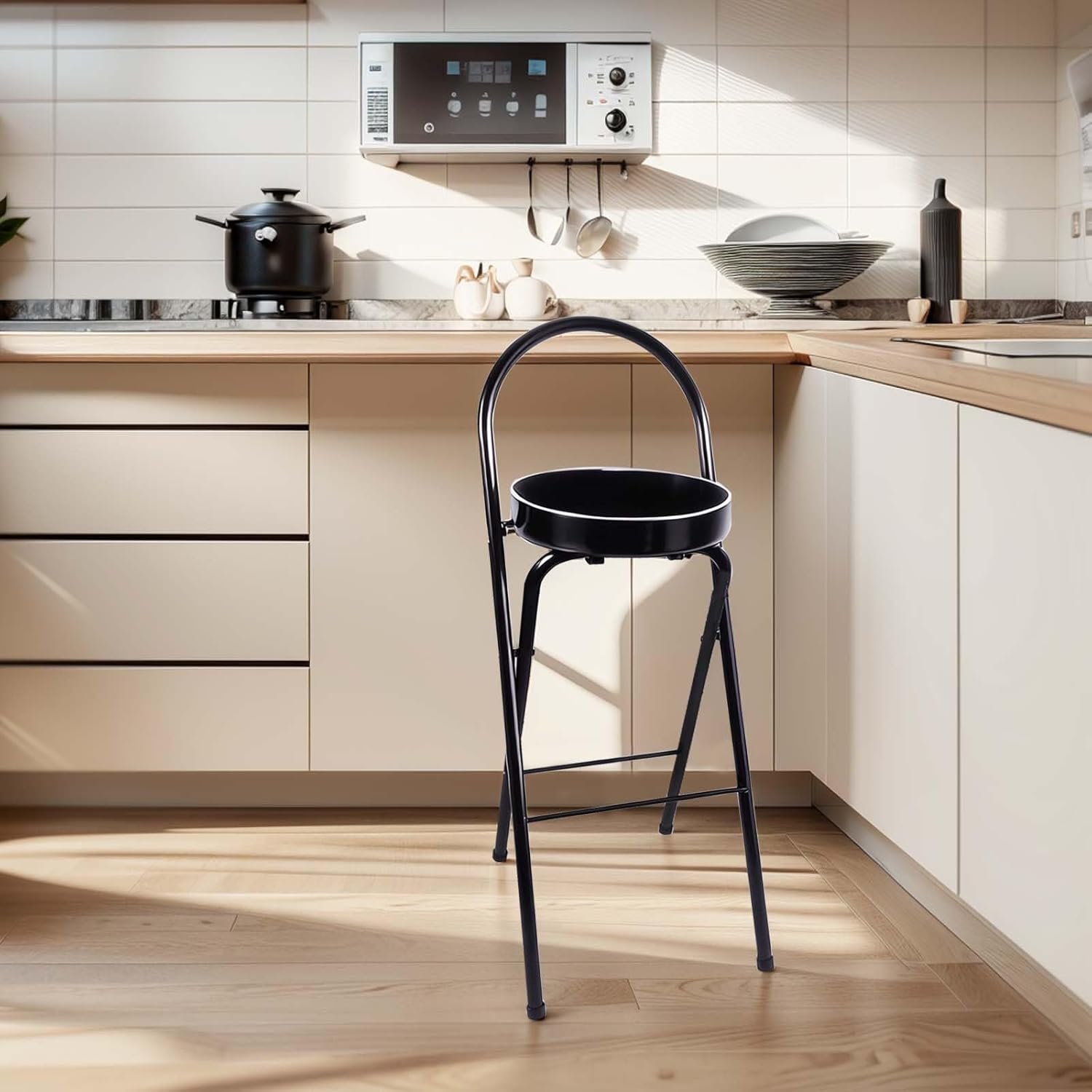Enjoy the luxury and comfort of a solid black high stool! Adopting thickened imitation leather cushion, soft robust, round steel tube frame shows industrial style. Distinctive foldable design, space saving more convenient. The seat is available in three heights to suit variety situations. bottom non-slip protection pad, stable as mountain, guarding safety floor. This stool not only symbol taste, but also flawless combination practicality, adding touch color your leisure time! Specification Name:high stools、island chairs Material: faux leather Color: Black Size: 65cm /70cm /75cm (25.6inch /27.5inch /29.5 inch ) Package Includes:1 x stools Single/2/3/4/6 Folding method: just release buckle press upwards it will fold up (it should be folded from seat, legs) Attention: 1.Due manual measurement, size may have 1-2 cm error, please measure accurately choose right size. 2.If you any questions, contact us, we provide with satisfactory solution within 24 hours.