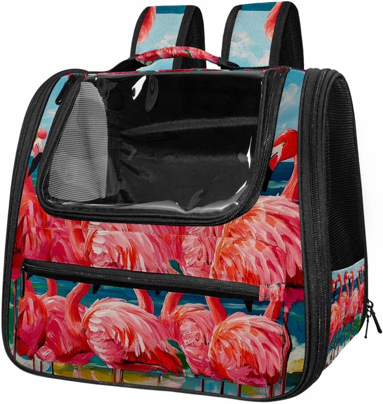 Well made: Cat Backpack Carrier is made from 900D oxford fabric, pp webbing, velvet, nylon, which is very sturdy, environmentally friendly and breathable. Not easily scratched by pet’s claws, pet backpack carrier is SAFETY & ANTI-SCRATCH. The back padding will give you a comfortable and breathable experience. Ventilated Backpack: With a breathable window in the front, this pet backpack allows cats to enjoy the sun without feeling stuffy. There are two side pockets and one big front pocket, and you can take foods or toy for your kitten pet. It is big enough for cat to turn around, and there are side pockets and hook holes, you will enjoy the greatest convenience when taking your cat out. Perfect size: Cat carrier is 15.75x9.84x13.78in/40x25x35cm. Fits most small/medium sized cat, dog, and pet. Quality fleece bed provide a comfortable place for your pet. Lightweight and easy to carry to all places. Built-in harnesses keep your naughty friends from escaping. Removable cosy mat for easier cleaning and let your pet enjoy it inside. Easy to carry: The adjustable shoulder strap of pet carrier bag help you hands-free carrying and makes it the most safe and convenient pet carrier bag for your travel. Seat belt design provide pets with safety protection throughout the trip. Pad protection keep your pets comfortable during travel. Unique Design: Innovative inside graphic design gives you a stereoscopic 3D visual experience. You also send us the photos you interest to make your unique dog or cat carrier. Pet bag is also a amazing gift for pet lover.