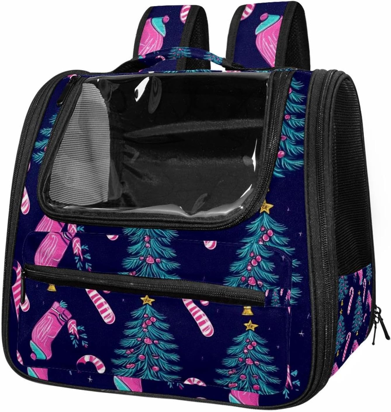 Well made: Cat Backpack Carrier is made from 900D oxford fabric, pp webbing, velvet, nylon, which is very sturdy, environmentally friendly and breathable. Not easily scratched by pet’s claws, pet backpack carrier is SAFETY & ANTI-SCRATCH. The back padding will give you a comfortable and breathable experience. Ventilated Backpack: With a breathable window in the front, this pet backpack allows cats to enjoy the sun without feeling stuffy. There are two side pockets and one big front pocket, and you can take foods or toy for your kitten pet. It is big enough for cat to turn around, and there are side pockets and hook holes, you will enjoy the greatest convenience when taking your cat out. Perfect size: Cat carrier is 15.75x9.84x13.78in/40x25x35cm. Fits most small/medium sized cat, dog, and pet. Quality fleece bed provide a comfortable place for your pet. Lightweight and easy to carry to all places. Built-in harnesses keep your naughty friends from escaping. Removable cosy mat for easier cleaning and let your pet enjoy it inside. Easy to carry: The adjustable shoulder strap of pet carrier bag help you hands-free carrying and makes it the most safe and convenient pet carrier bag for your travel. Seat belt design provide pets with safety protection throughout the trip. Pad protection keep your pets comfortable during travel. Unique Design: Innovative inside graphic design gives you a stereoscopic 3D visual experience. You also send us the photos you interest to make your unique dog or cat carrier. Pet bag is also a amazing gift for pet lover.