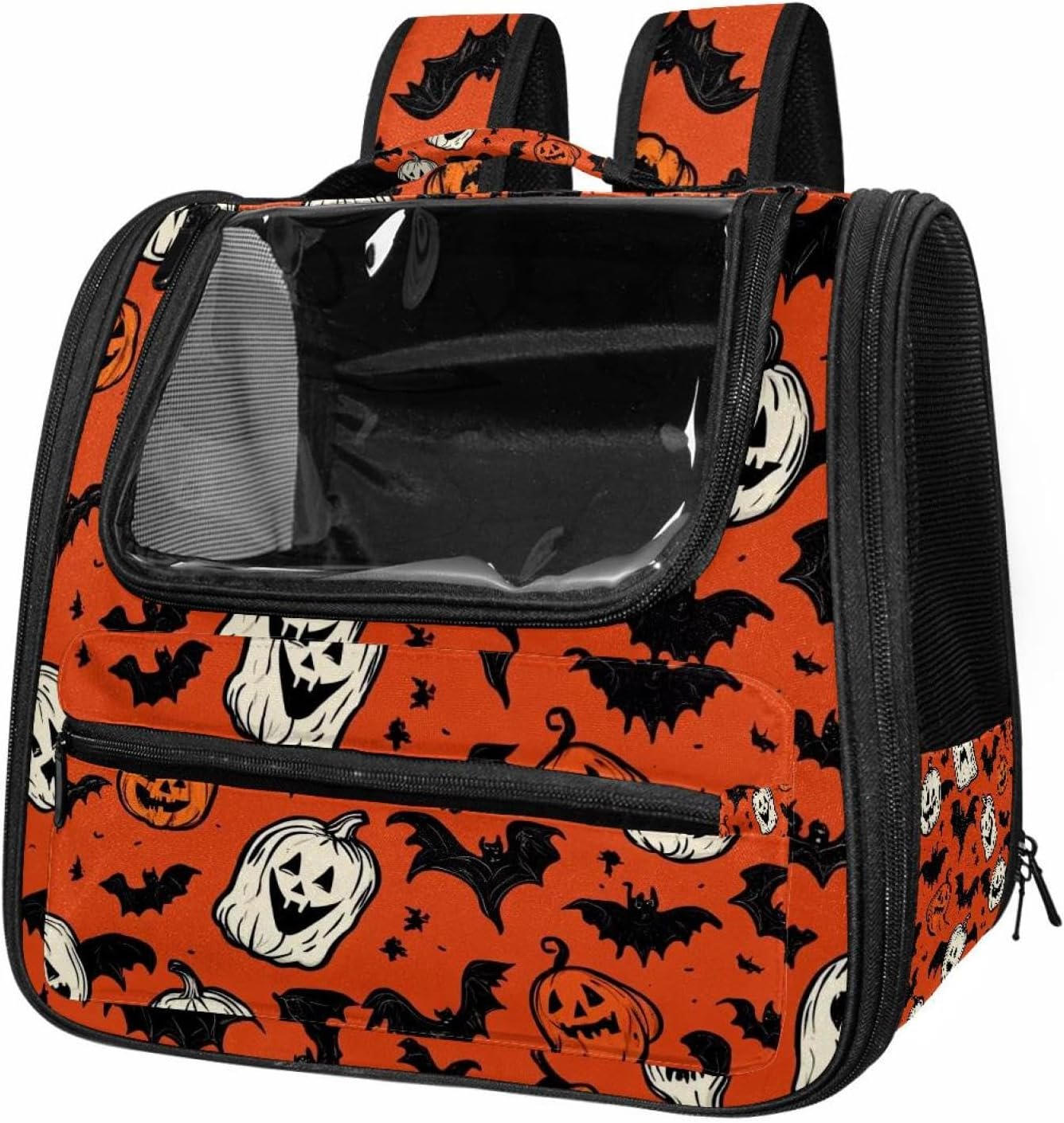Well made: Cat Backpack Carrier is made from 900D oxford fabric, pp webbing, velvet, nylon, which is very sturdy, environmentally friendly and breathable. Not easily scratched by pet’s claws, pet backpack carrier is SAFETY & ANTI-SCRATCH. The back padding will give you a comfortable and breathable experience. Ventilated Backpack: With a breathable window in the front, this pet backpack allows cats to enjoy the sun without feeling stuffy. There are two side pockets and one big front pocket, and you can take foods or toy for your kitten pet. It is big enough for cat to turn around, and there are side pockets and hook holes, you will enjoy the greatest convenience when taking your cat out. Perfect size: Cat carrier is 15.75x9.84x13.78in/40x25x35cm. Fits most small/medium sized cat, dog, and pet. Quality fleece bed provide a comfortable place for your pet. Lightweight and easy to carry to all places. Built-in harnesses keep your naughty friends from escaping. Removable cosy mat for easier cleaning and let your pet enjoy it inside. Easy to carry: The adjustable shoulder strap of pet carrier bag help you hands-free carrying and makes it the most safe and convenient pet carrier bag for your travel. Seat belt design provide pets with safety protection throughout the trip. Pad protection keep your pets comfortable during travel. Unique Design: Innovative inside graphic design gives you a stereoscopic 3D visual experience. You also send us the photos you interest to make your unique dog or cat carrier. Pet bag is also a amazing gift for pet lover.