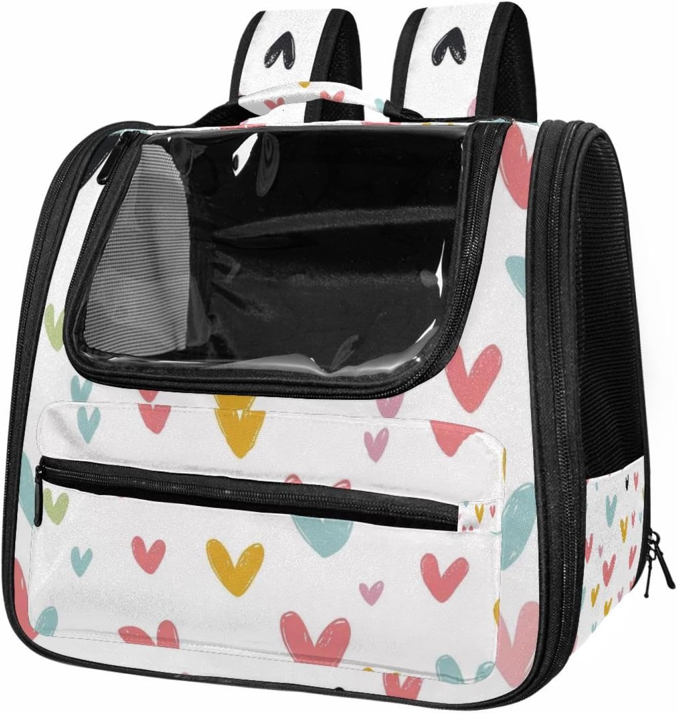 Well made: Cat Backpack Carrier is made from 900D oxford fabric, pp webbing, velvet, nylon, which is very sturdy, environmentally friendly and breathable. Not easily scratched by pet’s claws, pet backpack carrier is SAFETY & ANTI-SCRATCH. The back padding will give you a comfortable and breathable experience. Ventilated Backpack: With a breathable window in the front, this pet backpack allows cats to enjoy the sun without feeling stuffy. There are two side pockets and one big front pocket, and you can take foods or toy for your kitten pet. It is big enough for cat to turn around, and there are side pockets and hook holes, you will enjoy the greatest convenience when taking your cat out. Perfect size: Cat carrier is 15.75x9.84x13.78in/40x25x35cm. Fits most small/medium sized cat, dog, and pet. Quality fleece bed provide a comfortable place for your pet. Lightweight and easy to carry to all places. Built-in harnesses keep your naughty friends from escaping. Removable cosy mat for easier cleaning and let your pet enjoy it inside. Easy to carry: The adjustable shoulder strap of pet carrier bag help you hands-free carrying and makes it the most safe and convenient pet carrier bag for your travel. Seat belt design provide pets with safety protection throughout the trip. Pad protection keep your pets comfortable during travel. Unique Design: Innovative inside graphic design gives you a stereoscopic 3D visual experience. You also send us the photos you interest to make your unique dog or cat carrier. Pet bag is also a amazing gift for pet lover.