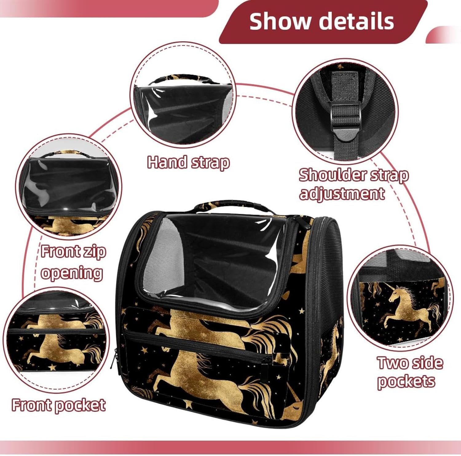 Portable Travel pet Backpack Carrier Hamster Bag Small Dog cat Carrier Breathable Hang Bag, Gold Unicorn