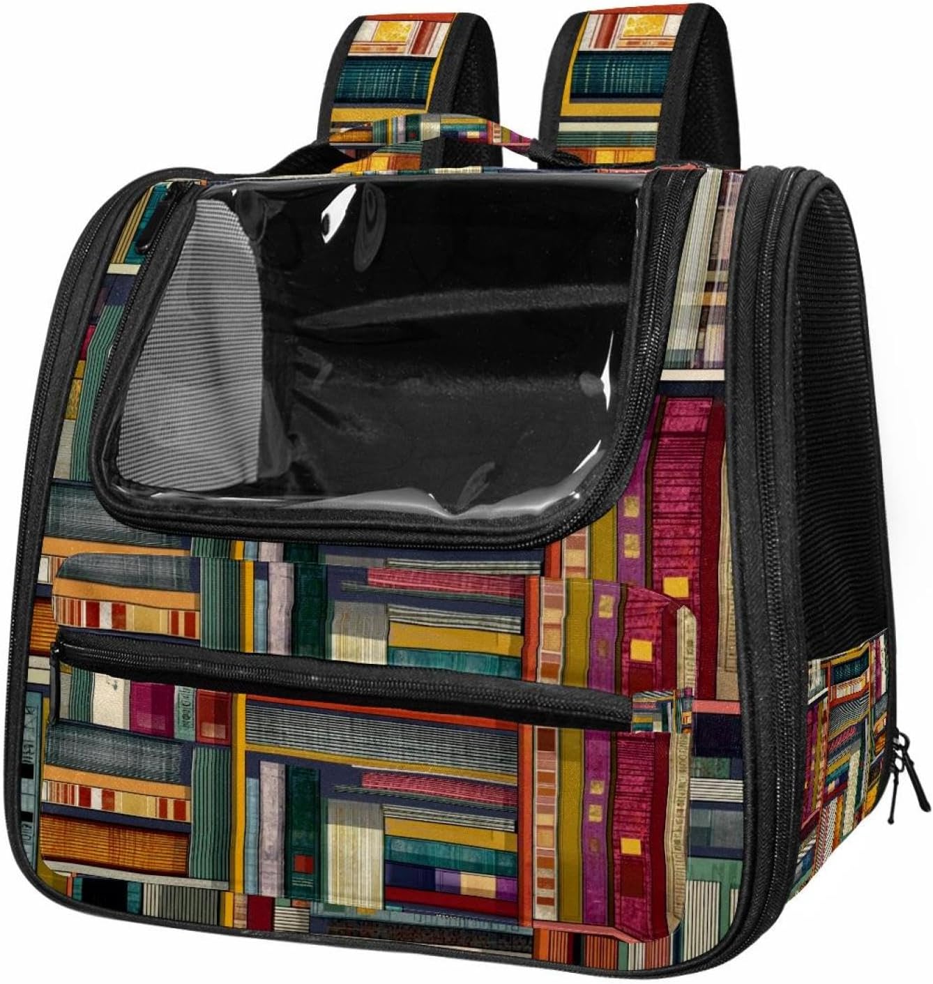 Well made: Cat Backpack Carrier is made from 900D oxford fabric, pp webbing, velvet, nylon, which is very sturdy, environmentally friendly and breathable. Not easily scratched by pet’s claws, pet backpack carrier is SAFETY & ANTI-SCRATCH. The back padding will give you a comfortable and breathable experience. Ventilated Backpack: With a breathable window in the front, this pet backpack allows cats to enjoy the sun without feeling stuffy. There are two side pockets and one big front pocket, and you can take foods or toy for your kitten pet. It is big enough for cat to turn around, and there are side pockets and hook holes, you will enjoy the greatest convenience when taking your cat out. Perfect size: Cat carrier is 15.75x9.84x13.78in/40x25x35cm. Fits most small/medium sized cat, dog, and pet. Quality fleece bed provide a comfortable place for your pet. Lightweight and easy to carry to all places. Built-in harnesses keep your naughty friends from escaping. Removable cosy mat for easier cleaning and let your pet enjoy it inside. Easy to carry: The adjustable shoulder strap of pet carrier bag help you hands-free carrying and makes it the most safe and convenient pet carrier bag for your travel. Seat belt design provide pets with safety protection throughout the trip. Pad protection keep your pets comfortable during travel. Unique Design: Innovative inside graphic design gives you a stereoscopic 3D visual experience. You also send us the photos you interest to make your unique dog or cat carrier. Pet bag is also a amazing gift for pet lover.
