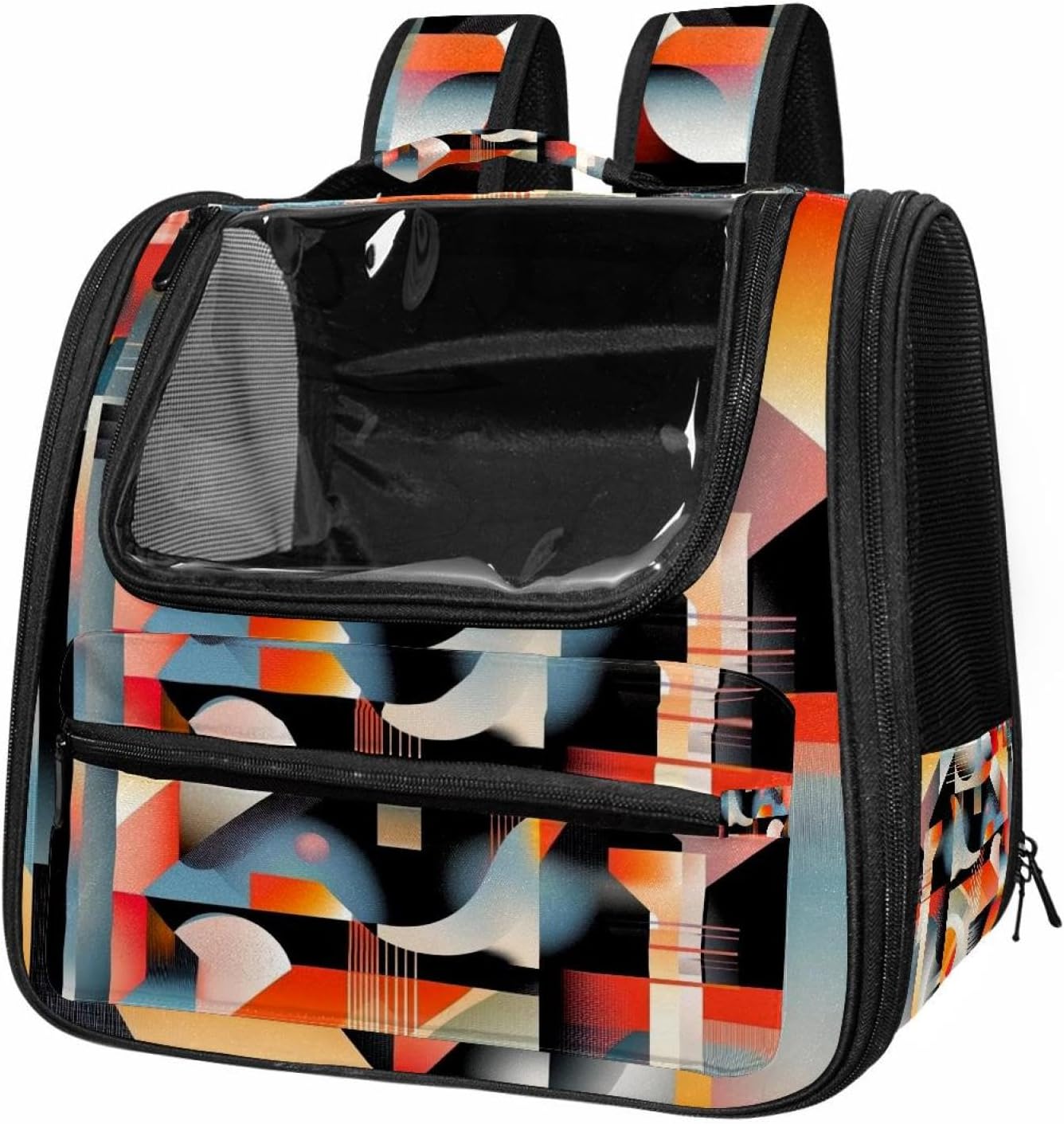 Well made: Cat Backpack Carrier is made from 900D oxford fabric, pp webbing, velvet, nylon, which is very sturdy, environmentally friendly and breathable. Not easily scratched by pet’s claws, pet backpack carrier is SAFETY & ANTI-SCRATCH. The back padding will give you a comfortable and breathable experience. Ventilated Backpack: With a breathable window in the front, this pet backpack allows cats to enjoy the sun without feeling stuffy. There are two side pockets and one big front pocket, and you can take foods or toy for your kitten pet. It is big enough for cat to turn around, and there are side pockets and hook holes, you will enjoy the greatest convenience when taking your cat out. Perfect size: Cat carrier is 15.75x9.84x13.78in/40x25x35cm. Fits most small/medium sized cat, dog, and pet. Quality fleece bed provide a comfortable place for your pet. Lightweight and easy to carry to all places. Built-in harnesses keep your naughty friends from escaping. Removable cosy mat for easier cleaning and let your pet enjoy it inside. Easy to carry: The adjustable shoulder strap of pet carrier bag help you hands-free carrying and makes it the most safe and convenient pet carrier bag for your travel. Seat belt design provide pets with safety protection throughout the trip. Pad protection keep your pets comfortable during travel. Unique Design: Innovative inside graphic design gives you a stereoscopic 3D visual experience. You also send us the photos you interest to make your unique dog or cat carrier. Pet bag is also a amazing gift for pet lover.
