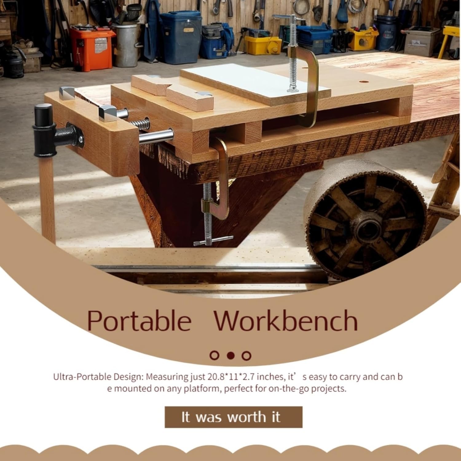 Core AdvantagesPortable: Despite its robust construction, our wood vise workbench is surprisingly lightweight and easy to transport. The compact design allows you to carry it to different job sites, workshops, or even outdoors for on-the-go projects. Whether you're working in your garage, at a friend's house, or in a remote location, this portable workbench ensures you always have a reliable workspace at your fingertips.Simple Operation: We understand that not everyone is a professional woodworker, which is why we've designed our workbench to be incredibly easy to use. With intuitive controls and a straightforward setup process, even beginners can start working on their projects right away. The user-friendly design eliminates the need for complex tools or technical knowledge, making woodworking accessible to everyone.Safe Design, Use with Confidence: Your safety is our top priority. That's why our wood vise workbench features a range of safety features to protect you during operation. The anti-slip feet provide a stable base, preventing the workbench from shifting or tipping over. The secure clamping mechanism ensures that your workpieces are held firmly in place, reducing the risk of accidents. Additionally, the rounded edges and smooth surfaces minimize the chance of injury from sharp corners or rough edges.SpecificationMaterial: Solid Beech Wood, MetalColor: Original Wood ColorInstallation Method: DesktopG-shape Fixing Clip Opening: 8.2cm/3.2inchWorkbench Clip Opening: 20cm/7.87inchLimit Block Height: 3.8cm/1.5inchProduct Size: 47*28*7cm/18.5*11*2.7inchProduct weight: 5.8KG/12.7LBPackage Size: 57.5*32*9cm/22.6*Total weight: 6.5KG/14.3LBPackage list: 2 * iron fixed clips+4 * limit screw blocks+1 * wooden board+1 * Wood Vise Workbench