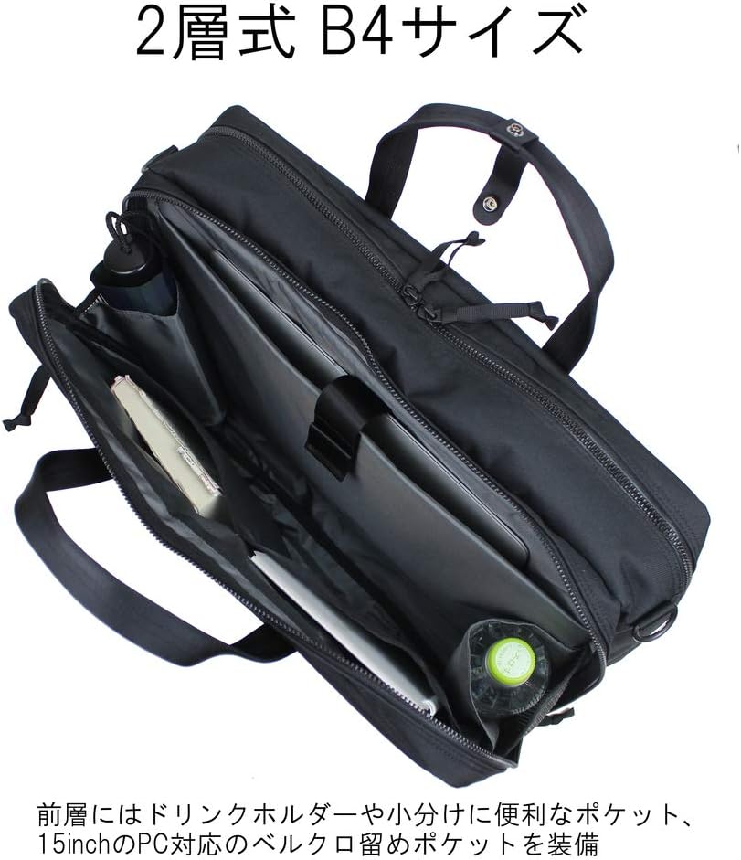 This basic chemical business series is lightweight and water repellent, and has a fulfilling functionality for daily use. 2 layers hold B4 size documents and can also hold a 15 inch PC.