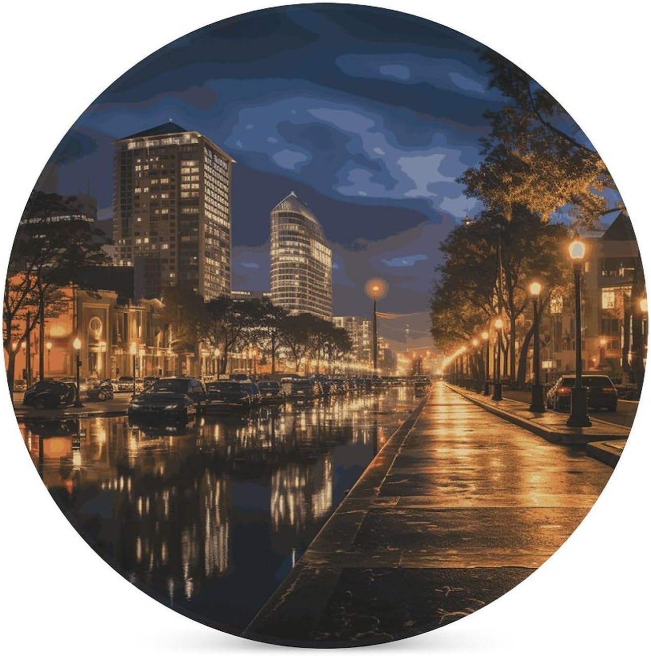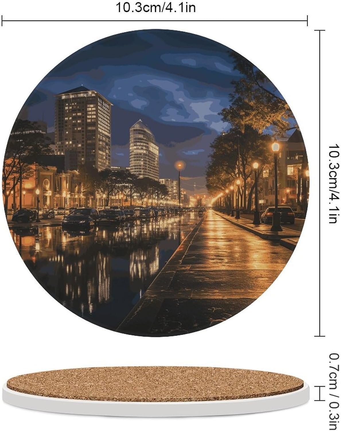 Portland at Night Coasters Round Coasters Set Ceramic Stone Coaster with Cork Base Coffee Cup Beverage Cup Mat Cute Funny Table Drinks Coaster for Mugs and Cups Office Kitchen