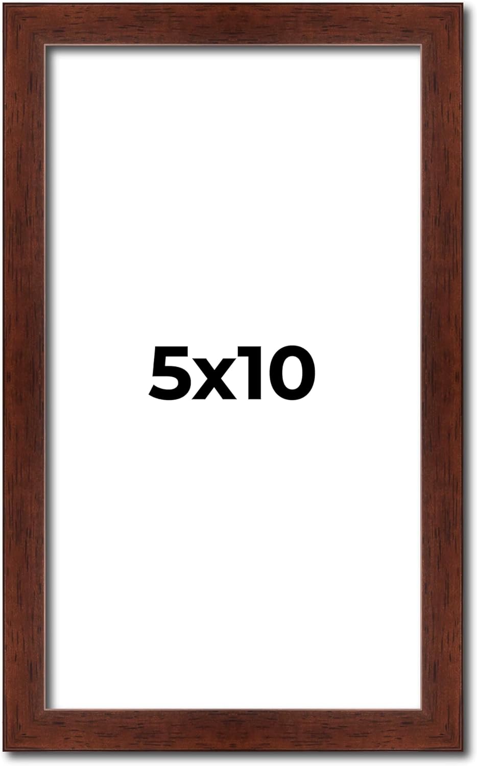 COMPLETE WOOD PICTURE FRAME Made To Display Photos, Artwork, Canvases, Chalk Boards, Documents, Mirrors, Puzzles, Mementos, Kids Drawings, Certificates, and All Other Media Measuring 5x10 Inches. OVERALL FRAME DIMENSIONS Measure 86331 x 86336 Inches. FRAME MOULDING WIDTH: 0.75 Inches. || FRAME RABBET DEPTH: 9/16 Inches. COMPLETE FRAME with UV Resistant Acrylic Plexiglass, Acid Free Foam Board Backing, and Hardware. Hanging hardware is included but not installed—easily attach for vertical or horizontal display! PROUDLY MANUFACTURED IN THE USA.