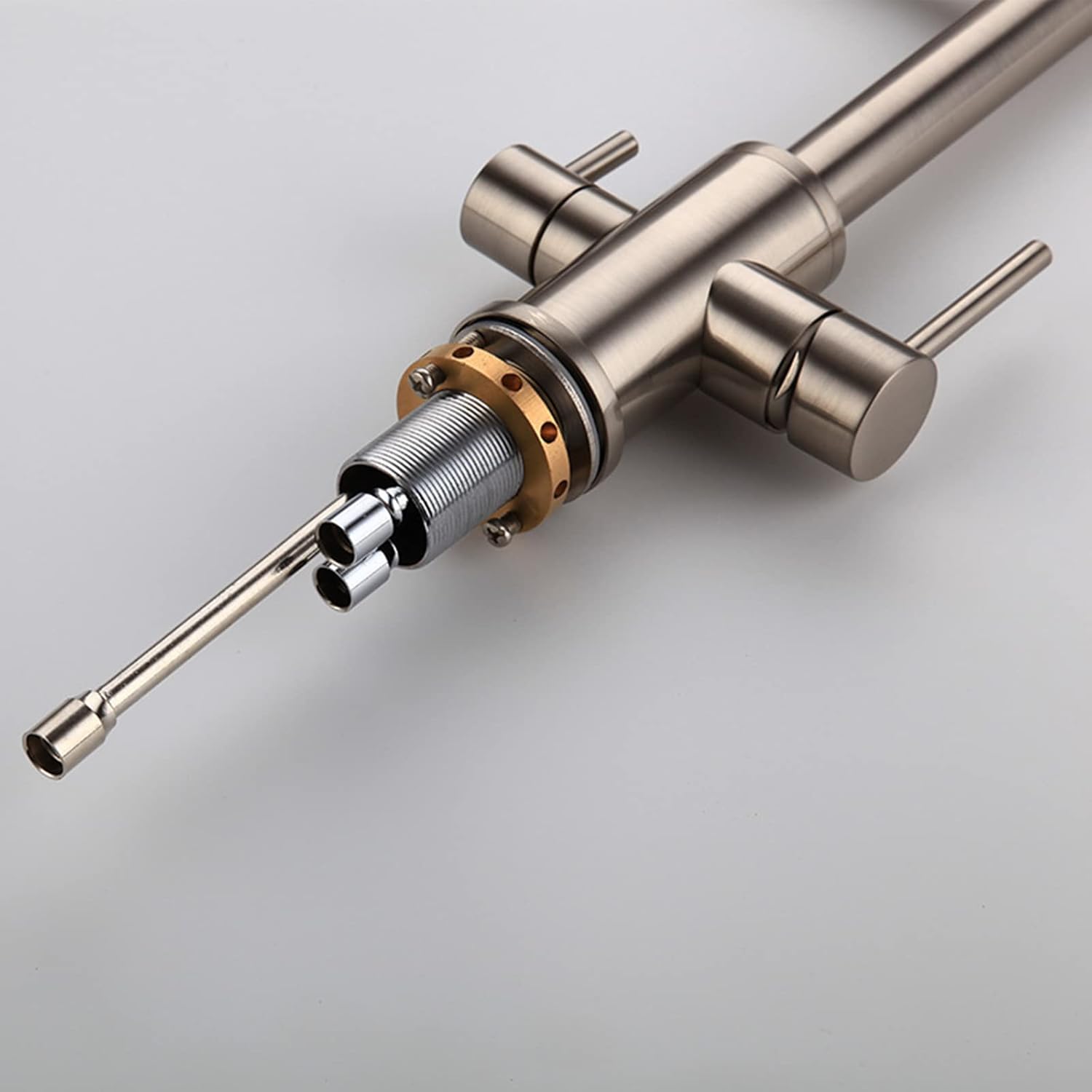 FaucetsProduct Category: All-copper hot and cold stretch folding kitchen faucetProduct material: copperProcess: Gravity castingSurface treatment: electroplated black/brushedSpool: ceramic spoolFunction type: dual handle dual function dual controlFunction category: Mixing faucetValve seat diameter: 35mmRange of use: kitchenSpecifications: brushed (short style), brushed (high style), black (short style), black (high style)Use and maintenance1. It is recommended to clean the surface of the faucet with water or mild detergent on a regular basis, and then dry the faucet with a soft towel. In order to keep the appearance of the faucet bright and clean, do not use salt or vinegar-based detergents.2. Avoid hard objects scratching the surface of the faucet, do not wipe with rough cloth, avoid using metal wire or scouring pad with hard particles.3. Do not contact with organic solutions and corrosive chemicals, so as not to damage the coating on the surface of the faucet and affect the brightness of the coating on the faucet.4. This product is suitable for installation after all the decoration projects are completed to avoid the tap damage and corrosion.
