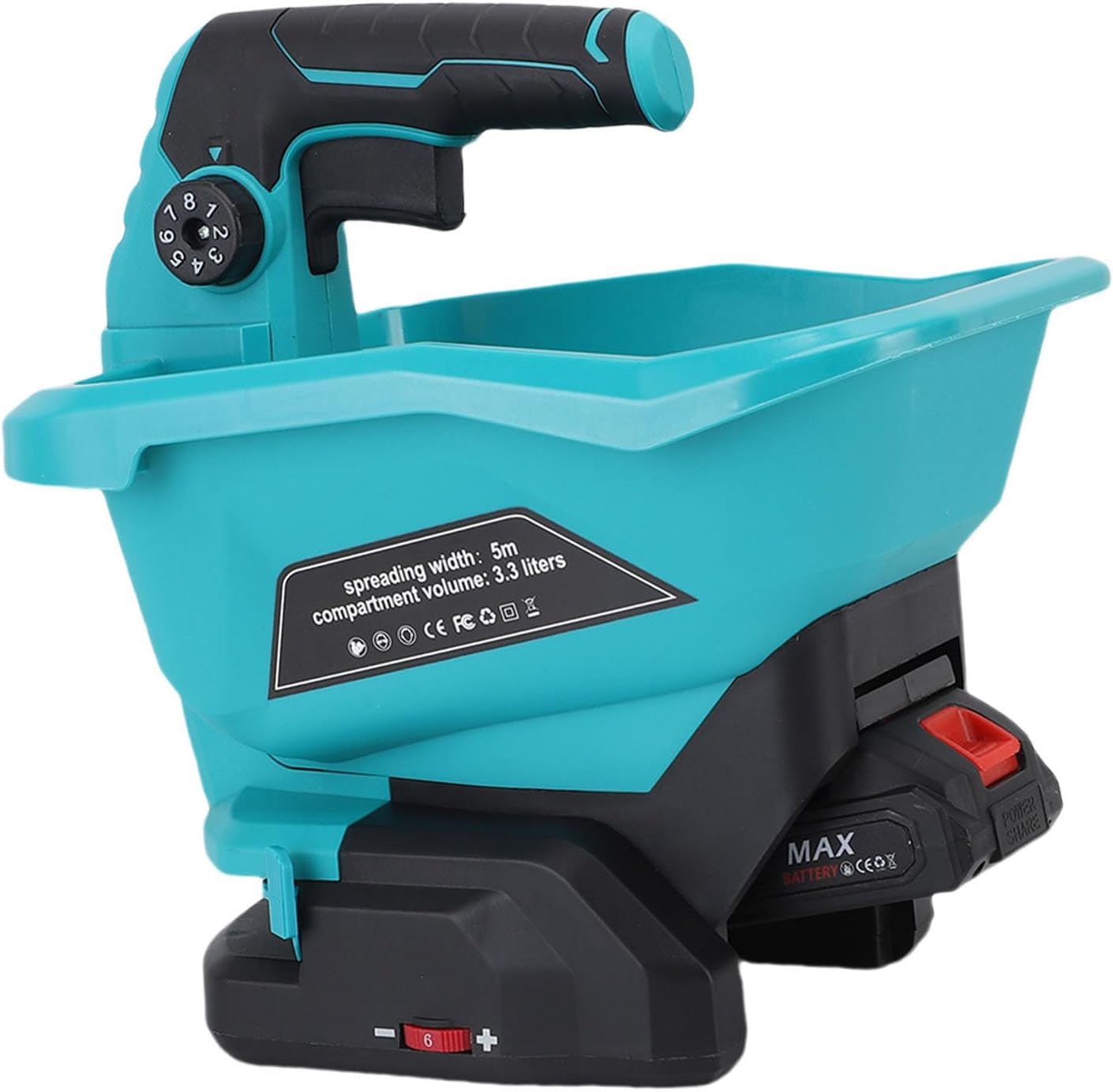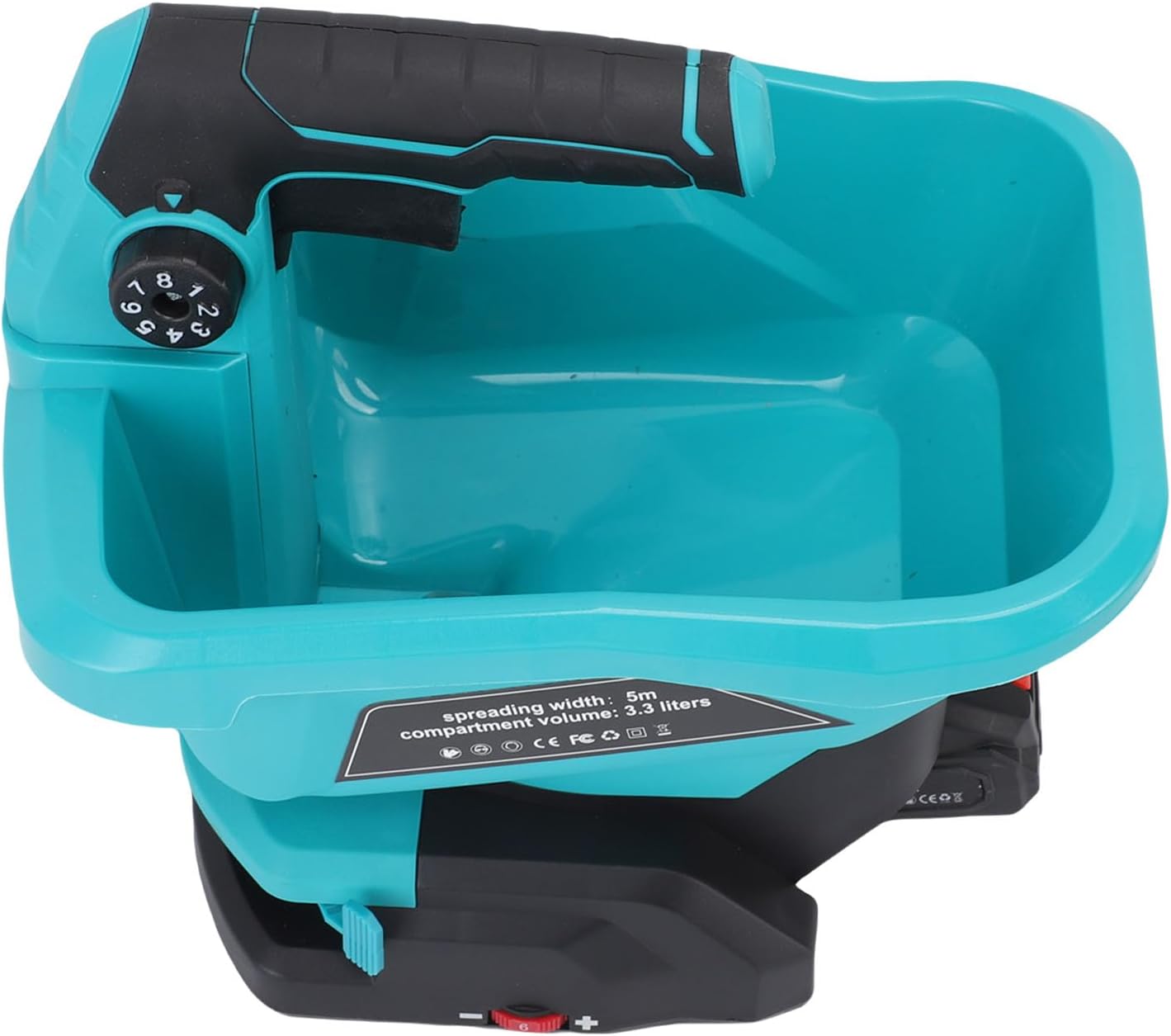 1. ABS Construction: Made from premium ABS material, this power spreader offers a sturdy and robust structure. It is damage proof, ensuring dependable use. 2. Generous Capacity and Coverage: With a 4L capacity and a maximum diffusion angle of 125°, this spreader efficiently covers large areas, making it ideal for various applications. 3. Advanced Technology: Featuring advanced technology, the spreader operates with no noise and is battery powered. It comes with a 2000mAh li battery for convenient operating. 4. Portable and Easy to Use: Designed with a handle for easy carrying and operating, this electric spreader is user friendly, ensuring simple control and maneuverability. 5. Versatile Applications: This power spreader is versatile and can be used for spreading feed, sowing, fertilizing, or melting snow, making it an essential tool for diverse tasks. Specification: Item Type: Power Spreader Material: ABS Weight: Approx. 2050.00g/72.31oz Battery Type: Li Battery (Shipped with Matching Battery) Battery Capacity: 2000mAh Product Size: Approx. 29cm/11.4in Package List: 1 x Electric Spreader 1 x Plug 1 x Battery Notice: When operating, wear a and avoid prolonged use.