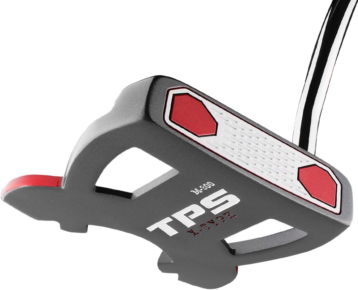 The PowerBilt Golf TPS X-Type M-900 Putter was designed to do one thing: Drain putts! This putter features everything you need to get that little white ball into the cup. The large mallet design provides plenty of stability and forgiveness and the "T" design alignment aids get you lined up with laser like accuracy. Mallet head moves weight to the perimeters, increasing MOI. Very stable and forgiving, even on off-centered hits. Grooved face and high MOI design puts forward spin on the ball, so it rolls straight and true.Outfitted with double bend hosel for proper hand position at address. Headcover purchased separately.