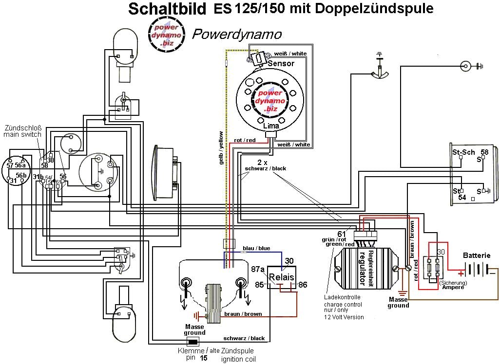 Compatible with MZES 125-150TS 125-150ETS 125-150Special system for 2 spark plugs in ES/ETS/TS 125/150. Will not fit RT125!12 Volt / 150 WattThis system does not include a puller or spark plug capThis is the D/C system and will run head lights, tail lights, turn signals and charges the battery.If the DC systems has R9522 regulator, then a battery is needed to flash the turn signals / lightsIf the DC systems has R7300 regulator, then no battery is needed to flash the turn signals / lightsThis is a complete system including Rotor, Stator, Coil-CDI, Regulator (where applicable), Adaptor mounting plate (where applicable), Spark plug cap, Rotor Puller & hardware.