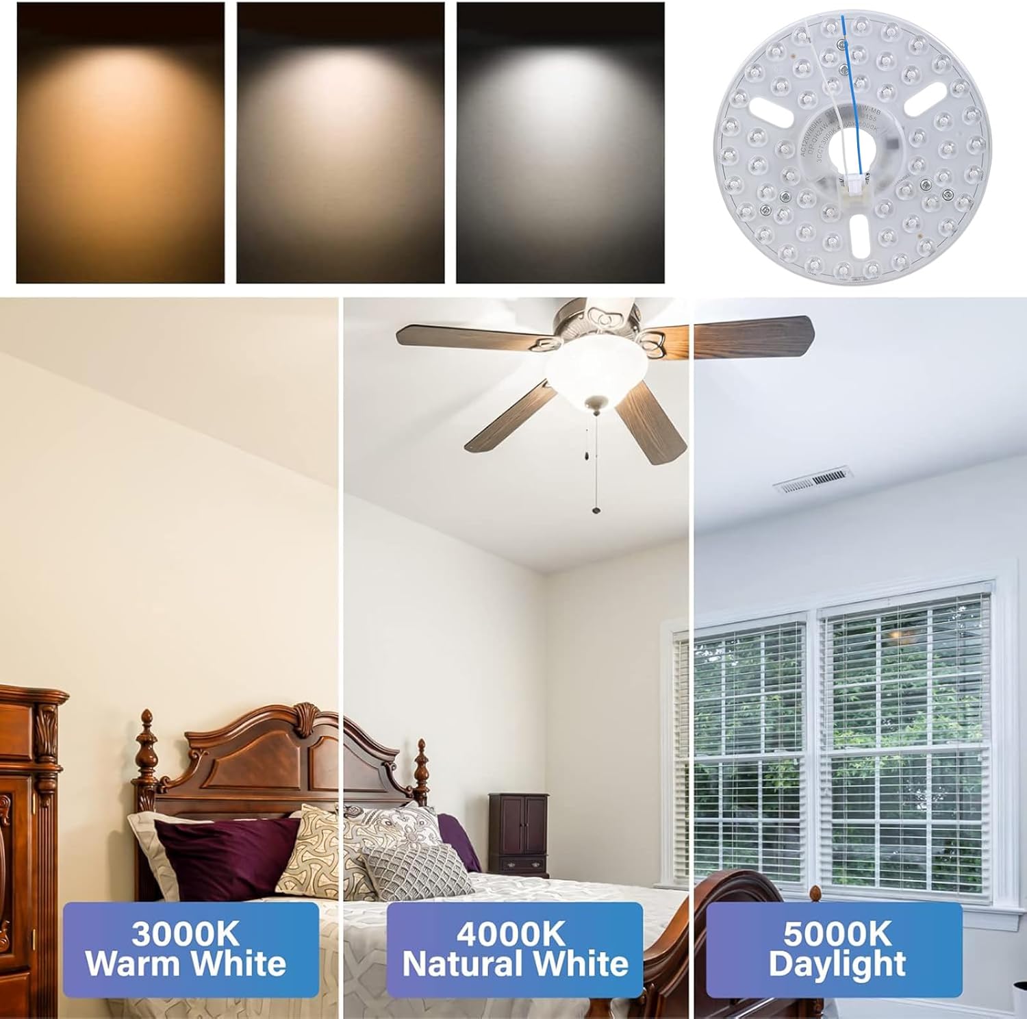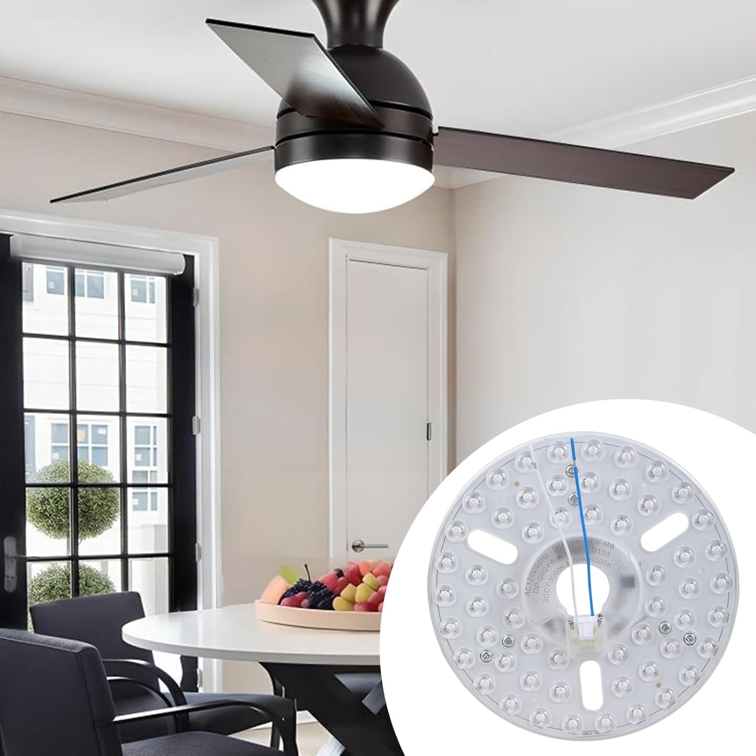 Practical LED Bulb Ceiling Fans Part Quick Installation Fan Light Upgrading Set Energy Efficient LED Fan Light For HomeFeatures:Upgrade your lighting with this 24W LED ceiling fan light conversion set, 2640LM brightness while consuming 80% less energy than traditional bulbs, featuring color temperature option install using base and design within 5 minutes not drilling required, suitable for most ceiling fan fixtures through secure mounting.Ideal for homeowners, office managers, and enthusiasts seeking energy efficient lighting for existing ceiling fan or flush mount installations.Perfectly illuminates garages, basements, storage rooms, living spaces, and workplaces with light that ensures visual comfort during prolonged use.Crafted from PC and aluminum materials, this reform set provide stable illuminations for indoor environments while maintaining heat dissipation.Specifications:Component: PC+AluminumWorking V: 110VPower: 24W Grade: IP42Diameter: Approx. 5.28inch(13.4cm)Package Includes:1x Fan Light ReplacementNote:Please allow 1-2cm errors due to manual measurement.Due to the differences between different monitors, the picture may not reflect the actual color from the item.