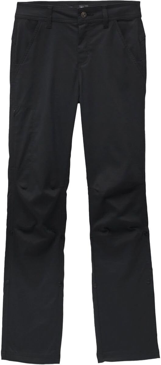 • Mid rise pant styling • Fixed waistband with interior drawcord • Slash hand pockets • Side zipper pocket • Snap adjustable pant lengths • Patch back pockets with flap closure • prAna logo on back waistband • Size: 4 / Inseam: RG 32 • Rise: 9 3/4 • Mid Rise, Standard