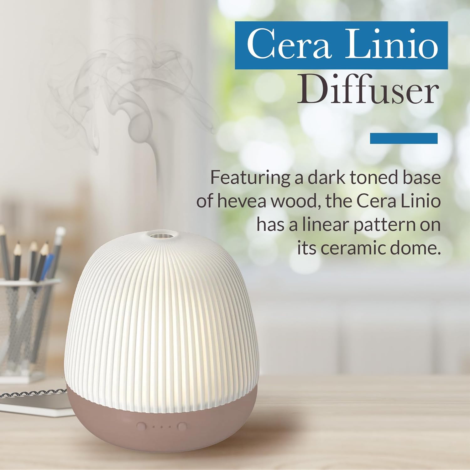 The Cera Linio Diffuser by Pranarom is a sophisticated aromatherapy device designed to enhance your living space with both style and functionality. It features a dark-toned base crafted from hevea wood, complemented by a ceramic dome with a linear pattern, making it a visually appealing addition to any room. The diffuser utilizes ultrasonic diffusion technology, offering multiple time settings (1, 3, 7, and 9 hours) and a water tank capacity of 180ml, which covers an area of approximately 50m². The Cera Linio Diffuser provides various light settings, including bright, soft, and a unique 'breathing' rhythm that promotes relaxation. It is designed for use with essential oils, allowing you to create a calming atmosphere with scents like Eucalyptus Radiata or invigorate your space with citrus oils such as Lemon and Bergamot. The diffuser is easy to use, with simple controls for adjusting light and diffusion settings, and it is recommended to clean the device every three days to maintain its performance.