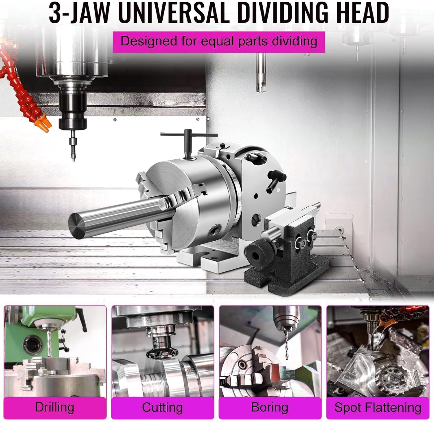 Crafted from high-quality cast iron, this indexing head is designed for durability and long-lasting performance, making it an essential tool for metal mold machining. Its versatile design allows for both horizontal and vertical use, adapting seamlessly to various machining tasks. Whether you're a professional machinist or a hobbyist, this indexing head enhances your workflow by offering a range of accessories that simplify your projects. **Key Features:** - **Center Height Options:** Available in 100mm/3.9in and 128mm/5in, providing flexibility for different machining setups. - **Chuck Diameter Choices:** Select from 4in/100mm, 5in/125mm, 6in/160mm, or 8in/200mm to suit your specific needs. - **3-Jaw Chuck Design:** Ensures secure gripping of workpieces, enhancing precision during machining. - **Gear Ratio:** With a 1:90 gear ratio, this indexing head allows for smooth operation and accurate positioning. - **Wide Clamping Range:** Accommodates various sizes with clamping ranges from 2-200mm, making it versatile for different projects. - **Robust Weight Options:** Available in multiple weights (22kg to 50kg) to suit different machining environments and provide stability. **Package Includes:** 1 x Indexing Head and all necessary accessories. Please note that measurements are taken manually, so slight variations may occur. Due to differences in screen displays, colors may appear differently. For any questions or further information about this product, please reach out. Our dedicated team is here to assist you and will respond within 24 hours to ensure your satisfaction. This indexing head is not just a tool; it's a valuable asset to elevate your machining capabilities.