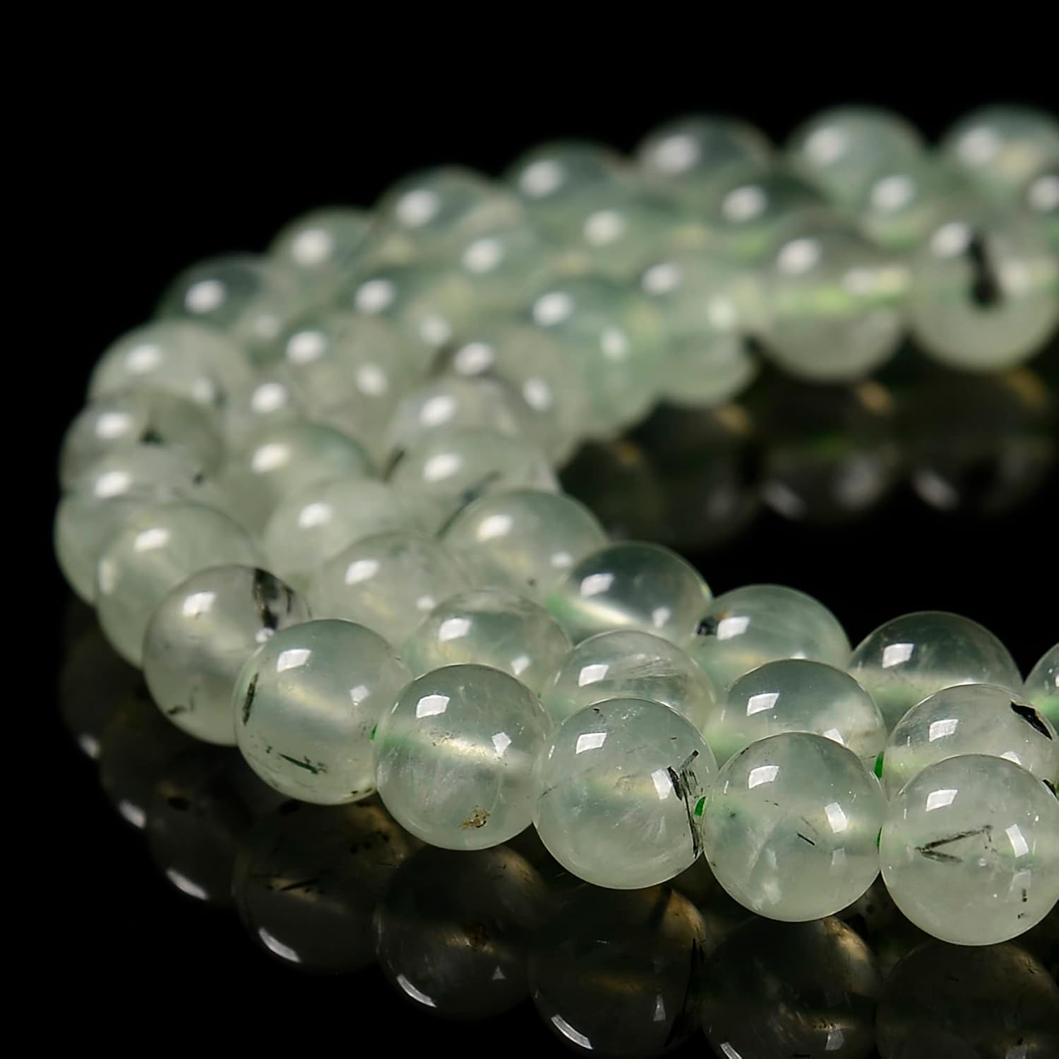 Material: (Not Treated or Dyed) Natural Prehnite Shape: Smooth Polished Round Color: Green Sizes: 6mm - Approx 64 Beads Per Strand 8mm - Approx 48 Beads Per Strand 10mm - Approx 38 Beads Per Strand 12mm - Approx 32 Beads Per Strand 14mm - Approx 28 Beads Per Strand Hole Size: Approx 1.0mm