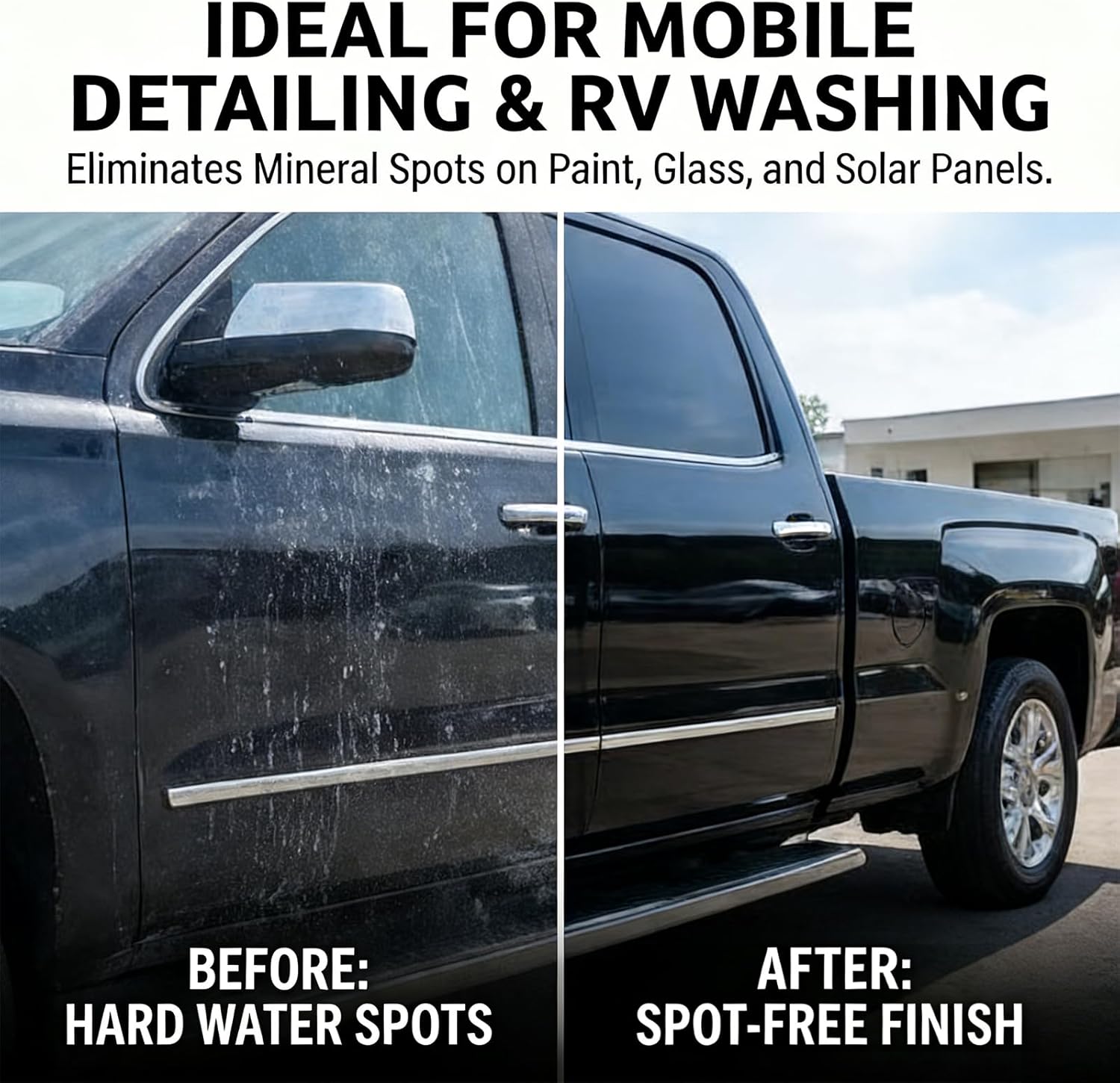 Upgrade to Heavy-Duty Softening Power with 10% Cross-Link ResinFor full-time RVers and mobile detailers, standard water softener resin often falls short. High chlorine levels in campgrounds and city water can cause ordinary beads to break down, turning into a "mushy" gel that clogs your plumbing and kills water pressure.The 10% Difference: Built to Last Our Premium 10% Cross-Link Cation Resin is the "armored tank" of water filtration. By increasing the cross-linkage structure, we have created a bead that is significantly harder and more resistant to chemical oxidation (chlorine) and physical attrition. This means:Longer Lifespan: Lasts up to twice as long as standard 8% resin.Better Flow: Resists crushing and mushrooming, maintaining consistent water pressure.High Efficiency: perfect for treating very hard water or high-chlorine municipal sources.Bonus: No More Spills! Refilling a narrow canister with wet, heavy resin beads can be a messy nightmare. That’s why we include a Collapsible Silicone Funnel in every bag. It’s designed to handle the flow of resin beads without bridging, making your maintenance routine clean and simple.Why Choose Our Premium Resin?Food-Grade Safety: Sourced from NSF/ANSI 44 certified materials, solvent-free, and safe for drinking and cooking.Spot-Free Results: Ideal for professional car detailing; prevents mineral spots on paint and glass.Cost-Effective: The durability of 10% resin means you buy replacements less often, saving money in the long run.Technical Specifications: - Type: 10% High Cross-Link Cation Exchange Resin (Premium Gel) - Ionic Form: Sodium (Na+) - Volume: Approx. 5 Liters / 0.18 Cubic Feet - Weight: Approx. 9.5 Lbs (Higher density than standard resin) - Included: 1x Resin Bag, 1x Silicone Funnel - Compatibility: All standard portable RV softeners, Mobile DI Tanks, Home SystemsDon't let harsh water ruin your trip or your plumbing. Invest in the durability of 10% Cross-Link Resin today.