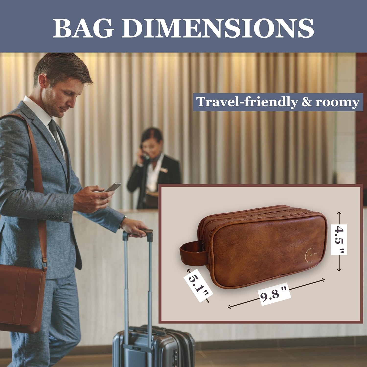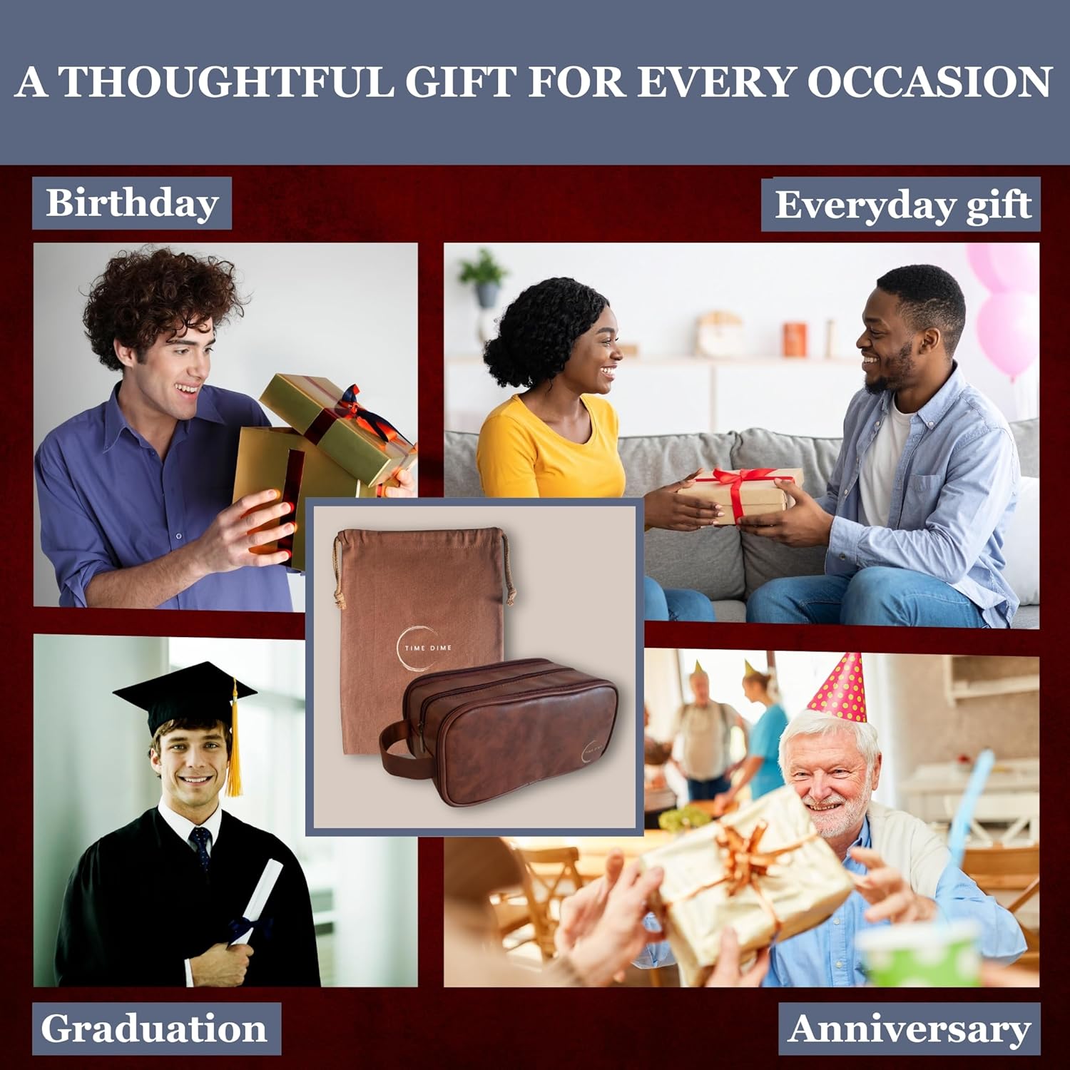 Make gifting effortless with a present he’ll truly appreciate. The Time Dime Men’s Toiletry Bag blends timeless design with practical features in a compact, travel-ready format. Crafted from vegan PU leather with a refined leather-look finish, it’s stylish, durable, and water-resistant. Whether he’s traveling or organizing his grooming essentials at home, this bag is a reliable everyday companion. Paired with a matching drawstring pouch, it arrives gift-ready – a thoughtful choice for husbands, fathers, sons, brothers, or any man who values quality and organization.