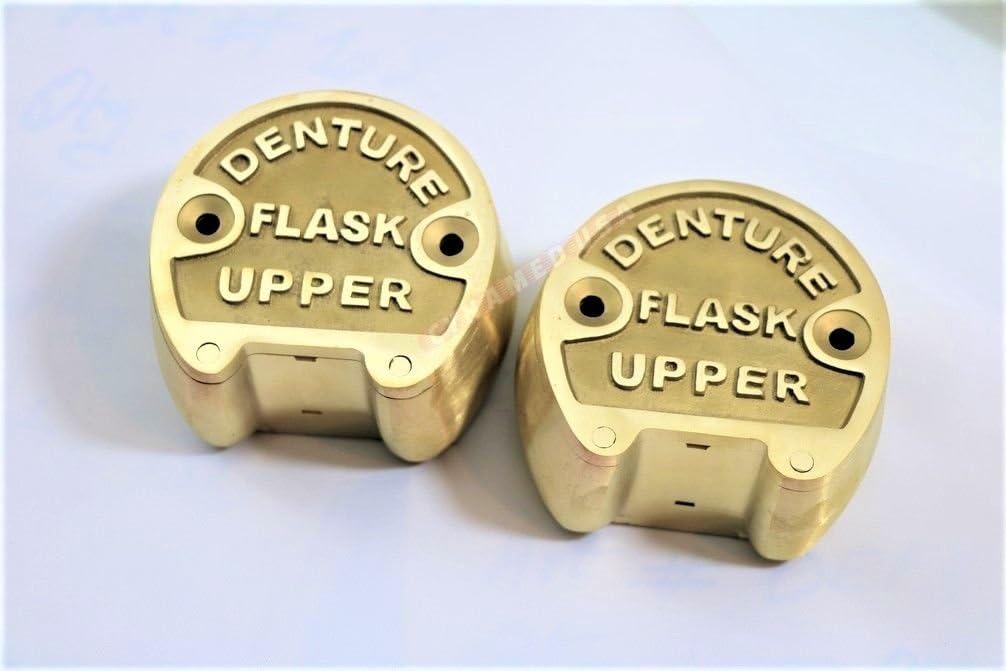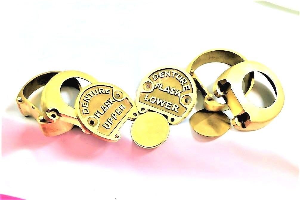 Dental Denture 1 Piece Upper & 1 Piece Lower Flask ( SAME AS PICTURE ) Brass Finish (Actual Picture Of The Product) Premium Grade Brass Handcrafted to precise dimensions Designed to Perfectly Fit the Hands