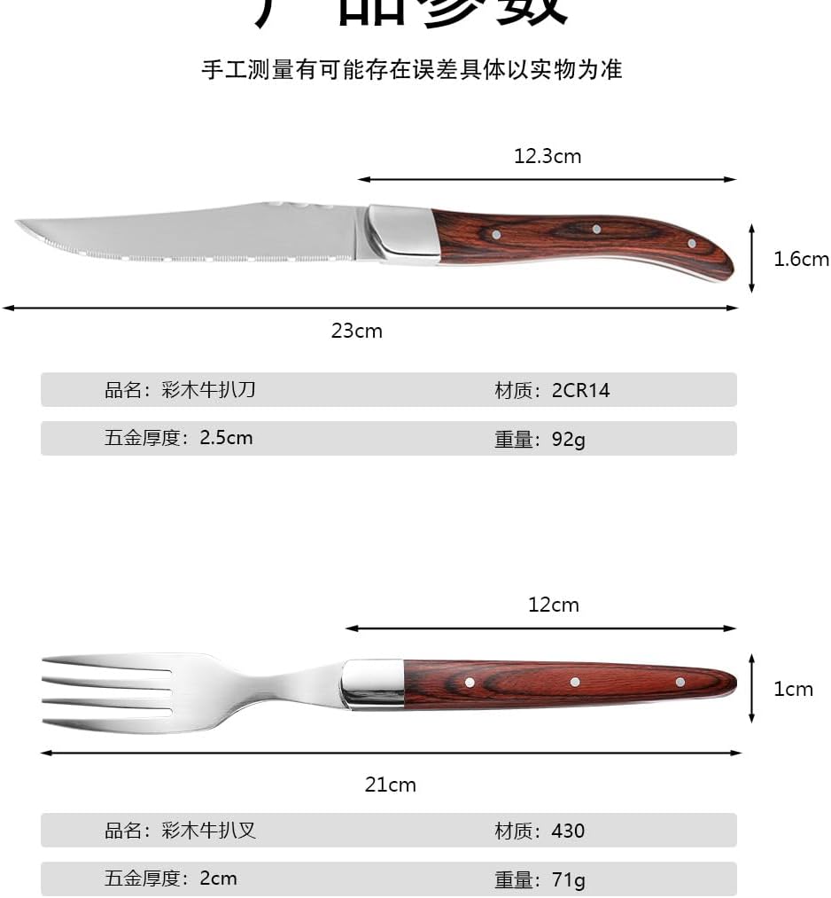 Premium Red Wood Steak Knife & Fork Set - High-End Stainless Steel Western Dinner Cutlery for Fine Dining