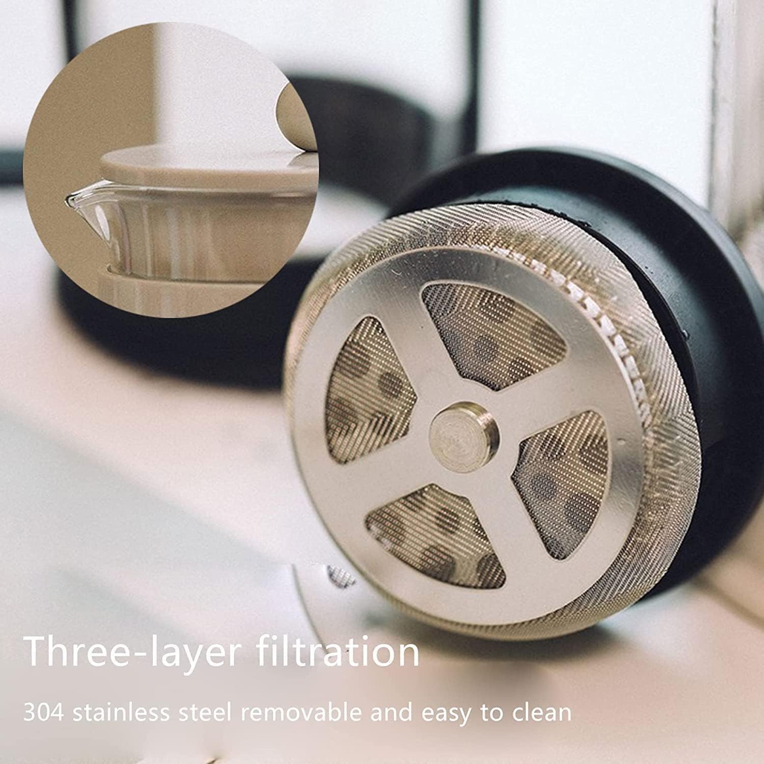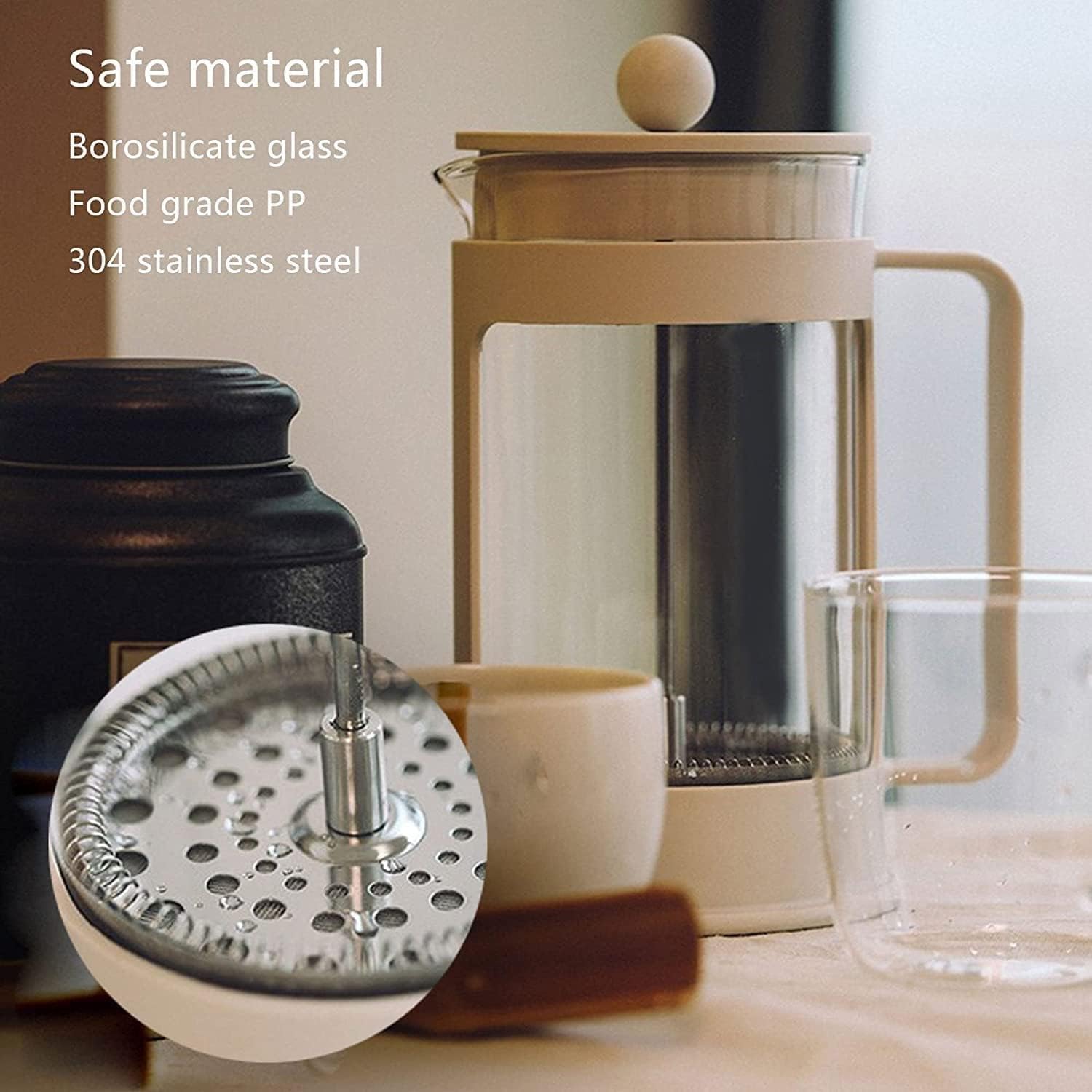 Color:Black , WhiteProduct Feature:?French, Coffee, Press Is Recognized Worldwide As The Best Way To Brew Coffee.?Use The Coffee Maker, You Can Make a Great Coffee In Minutes At Home ,Office ,Camping And More.?It's Completely Transparent, And You Can See The Whole Process Of Coffee Changes With Great Pleasure.?In Addition To Coffee, You Can Also Use It To Make a Variety Of Scented Flower Tea, Milk Foam And So On.? It's Also a Great Gift For a Friend ? Simple To Use? Single Wall Borosilicate Glass? Double Screen Filter ? Beaker Fully Transparent? Stainless Steel Plunger? Easy To Pour Spout? Easy To Clean? Great Gift Idea